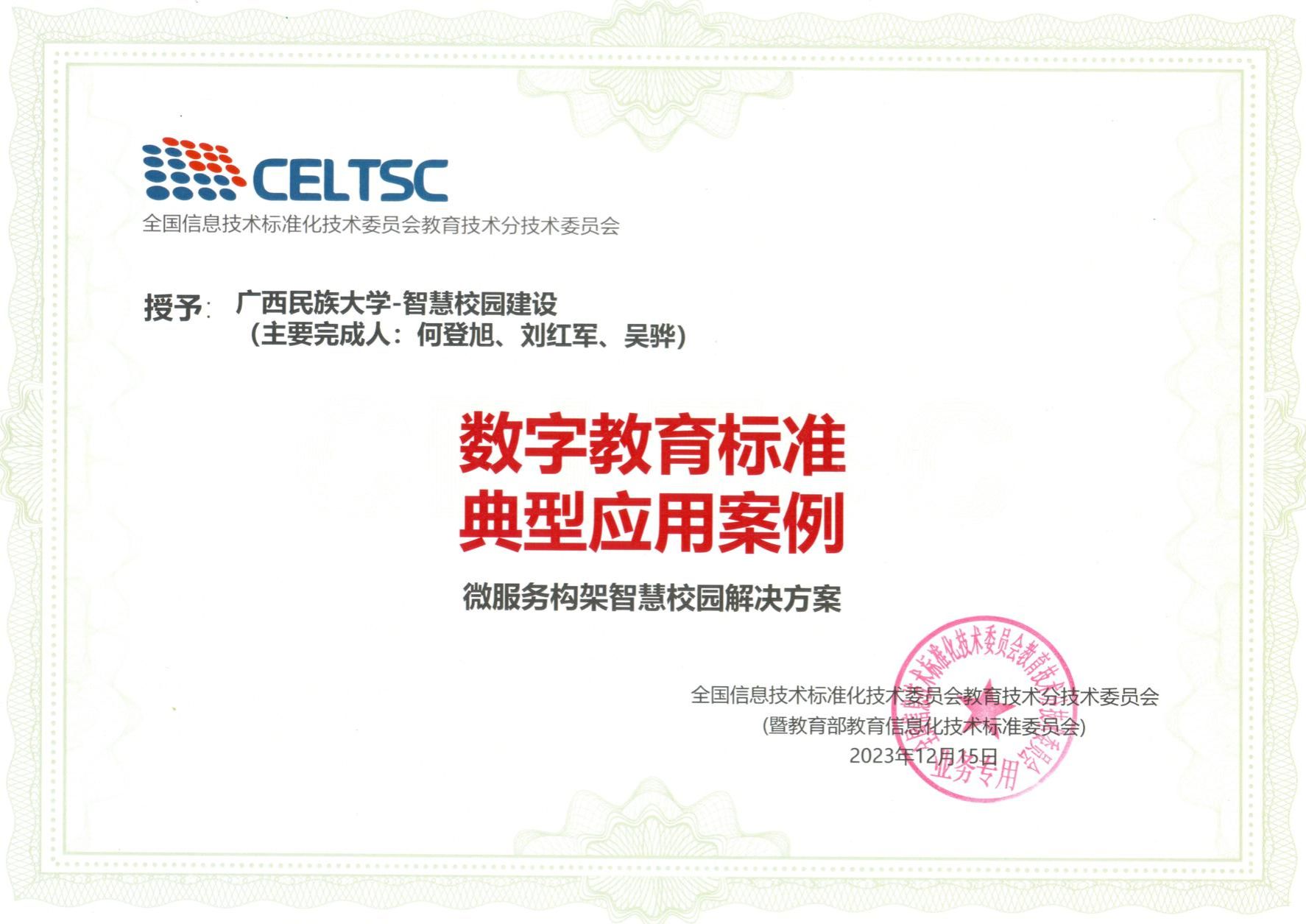 近日,全国信息技术标准化技术委员会教育技术分技术委员会暨教育部教育信息化技术标准委员会(CELTSC,简称“标委会”)及自治区教育厅分别公布了2023年度优秀案例评选结果。beat365《智慧校园建设项目——微服务构架智慧校园解决方案》《基于实时数据的教育大数据分析和应用平台》项目案例成功入选。这是继beat365入选自治区教育厅2021年度教育信息化应用优秀案例之后,在信息化建设工作方面所取得的最新成果。