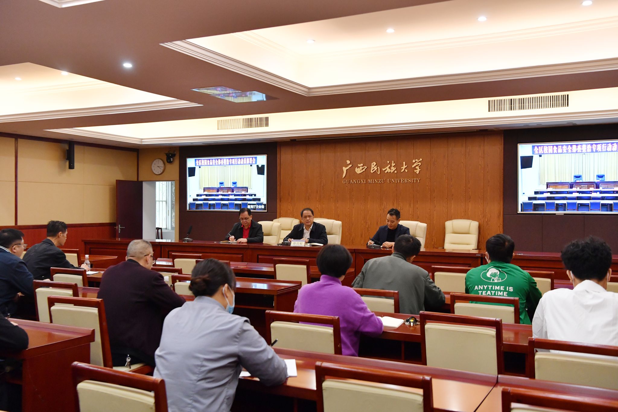 beat365在相思湖校区办公楼212会议室设分会场参会。校党委常委、副校长蔡高根,国有资产管理处、后勤管理处、幼儿园、相思湖学院分管食堂领导、各外包食堂管理人员等参会。