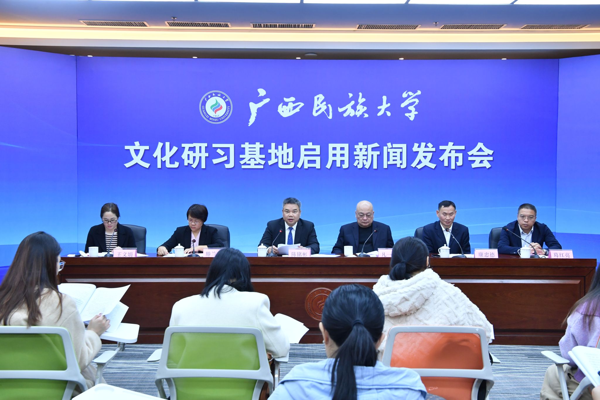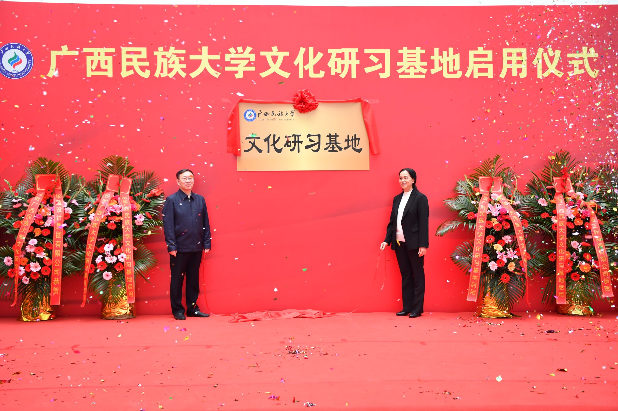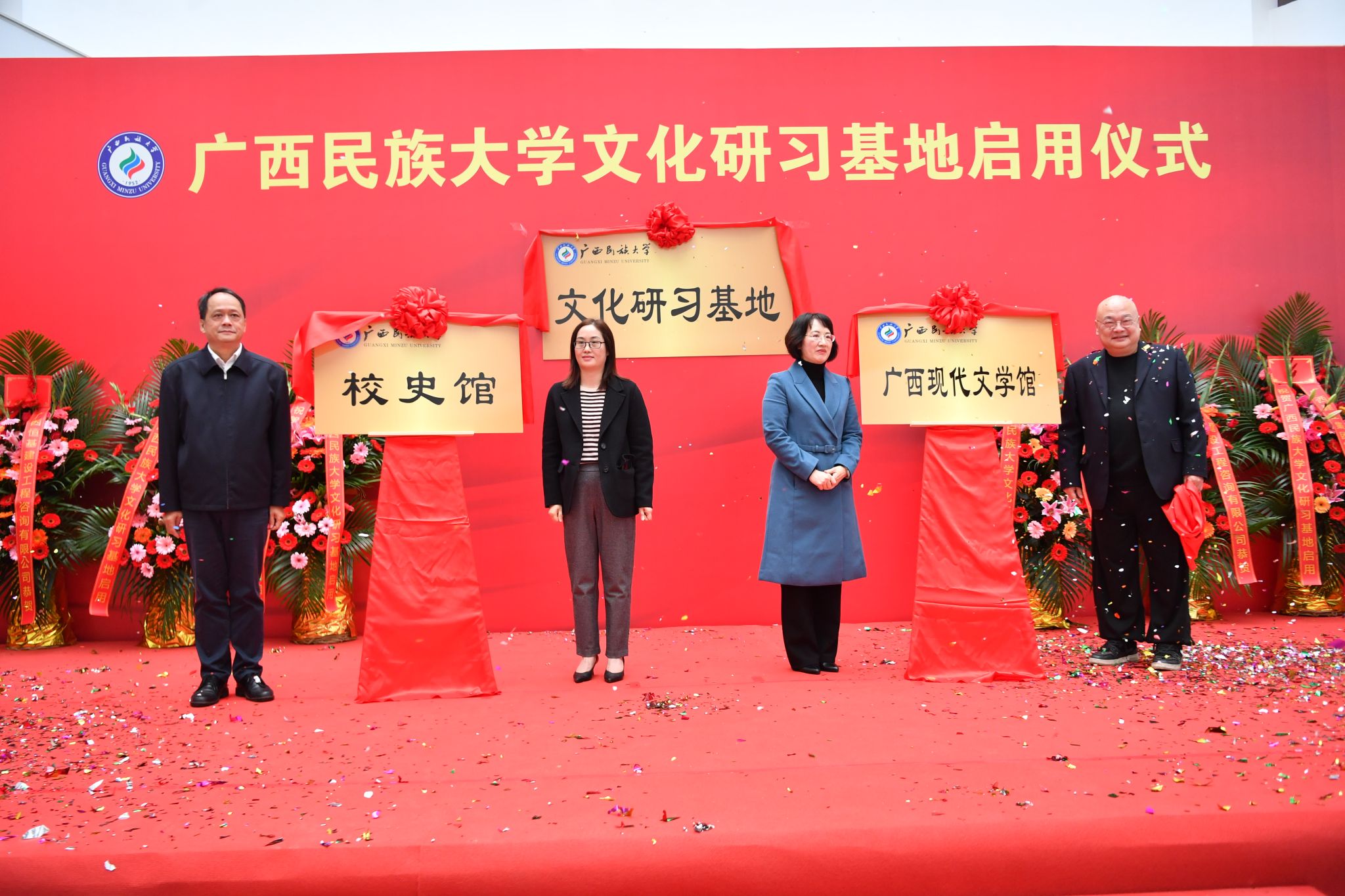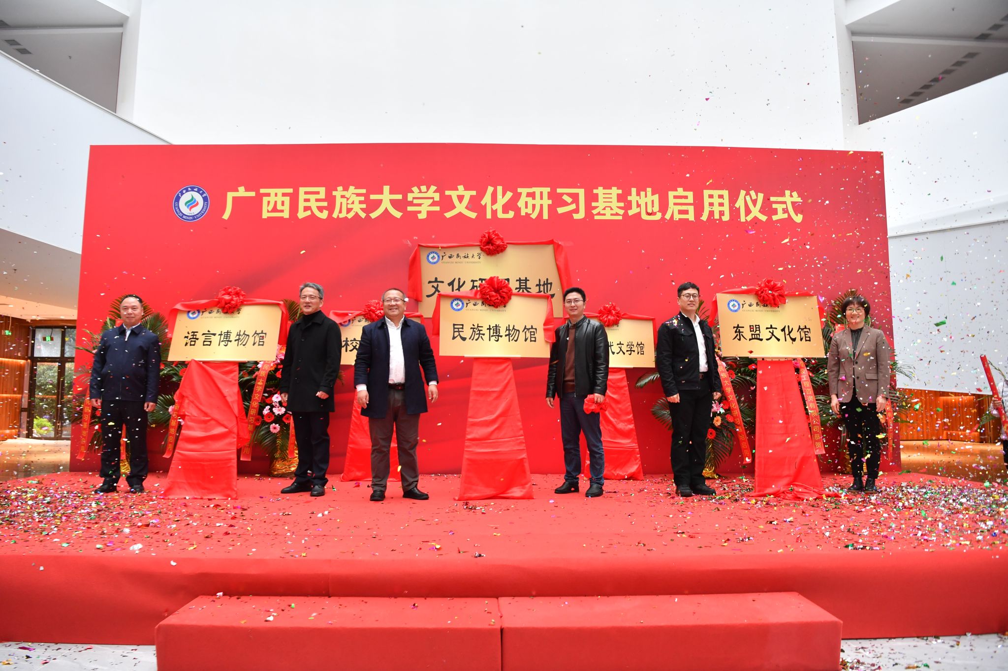启用仪式上,卞成林与韦雪芳共同为文化研习基地揭牌。其他校领导与各展馆负责人为校史馆、广西现代文学馆、语言博物馆、民族博物馆和东盟文化馆揭牌。陈铭彬在启动仪式上致辞,吕俊彪主持启动仪式。
