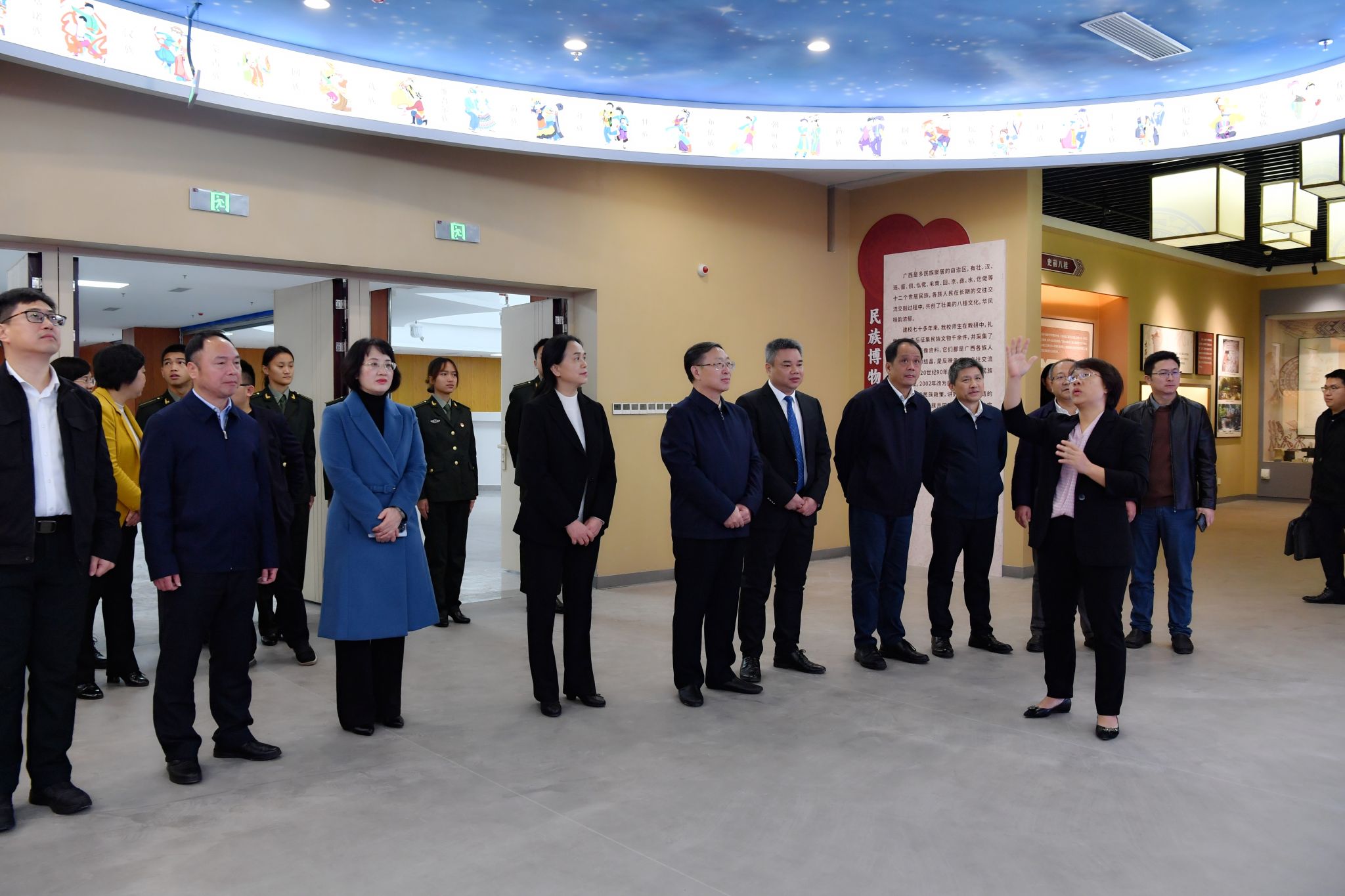 民族博物馆设有广西简史展区、广西世居民族展区和东南亚民族展区,将收藏保管、教学实践、科学研究以及宣传教育功能有机结合,凝聚了民大师生扎根田野开展民族民俗教学研究的心血,是学校“以文化人、以文育人”、展示华风桂韵、共筑华夏华章的特色育人窗口和沟通桥梁,展陈的物件,有力地彰显了中华文化的华美与博大,是见证中华民族交往交流交融的不朽乐章。