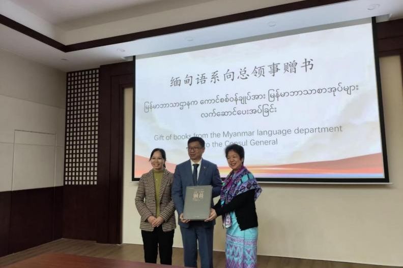 缅甸语系教师向总领事馆赠送书籍