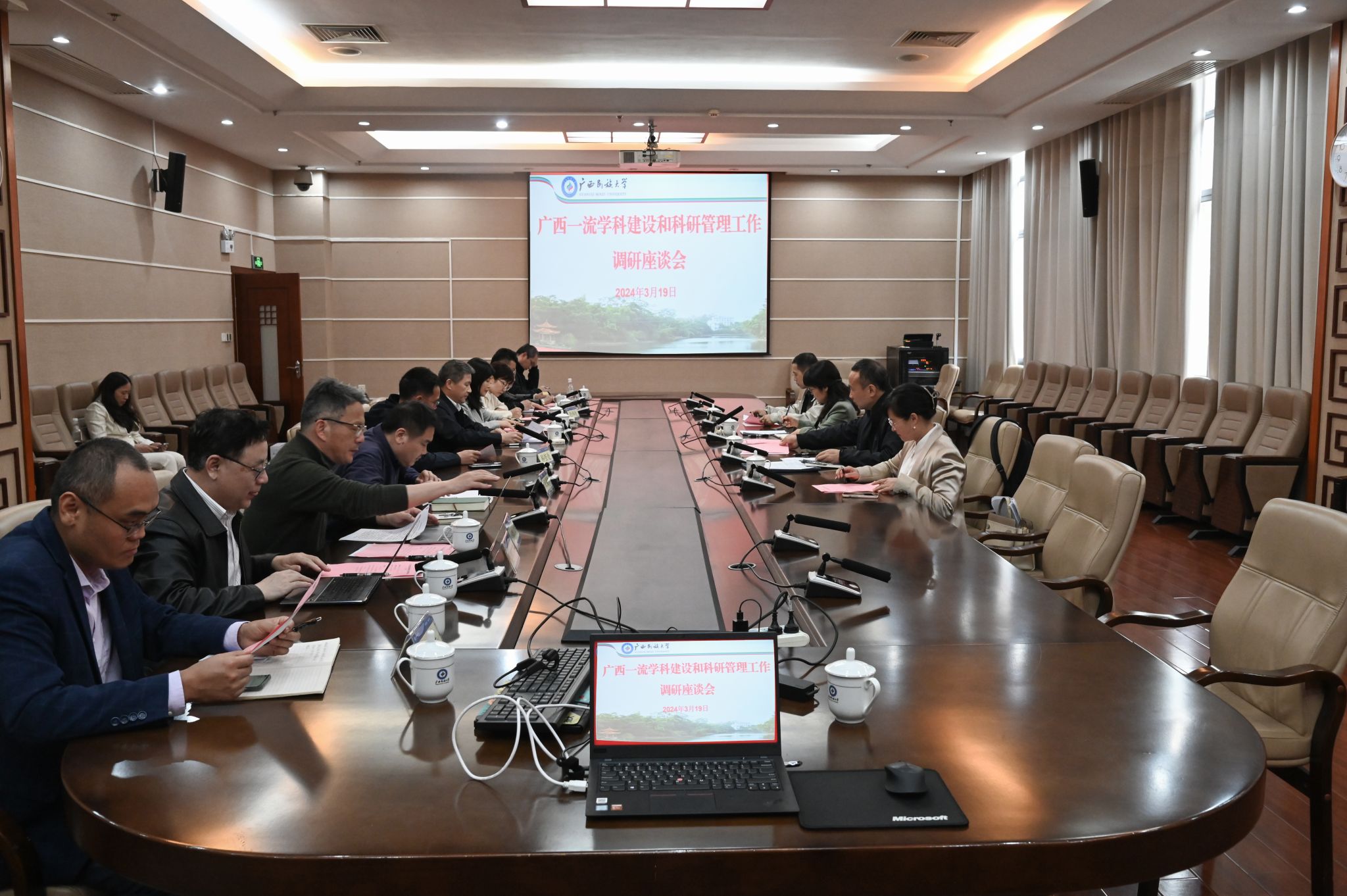 吕俊彪对调研组一行表示欢迎,并汇报了学校广西一流学科项目建设及财政资助经费支出进度、高水平科研平台建设、国家级科研项目申报及立项等方面的情况。他表示,beat365亚洲体育官方网站将以本次调研为契机,进一步加快一流学科项目建设步伐,以更大的力度统筹现有资源,做好“补短板强弱项”工作,充分发挥办学特色,服务国家和区域重大战略需求,更好地实现学校高质量发展。