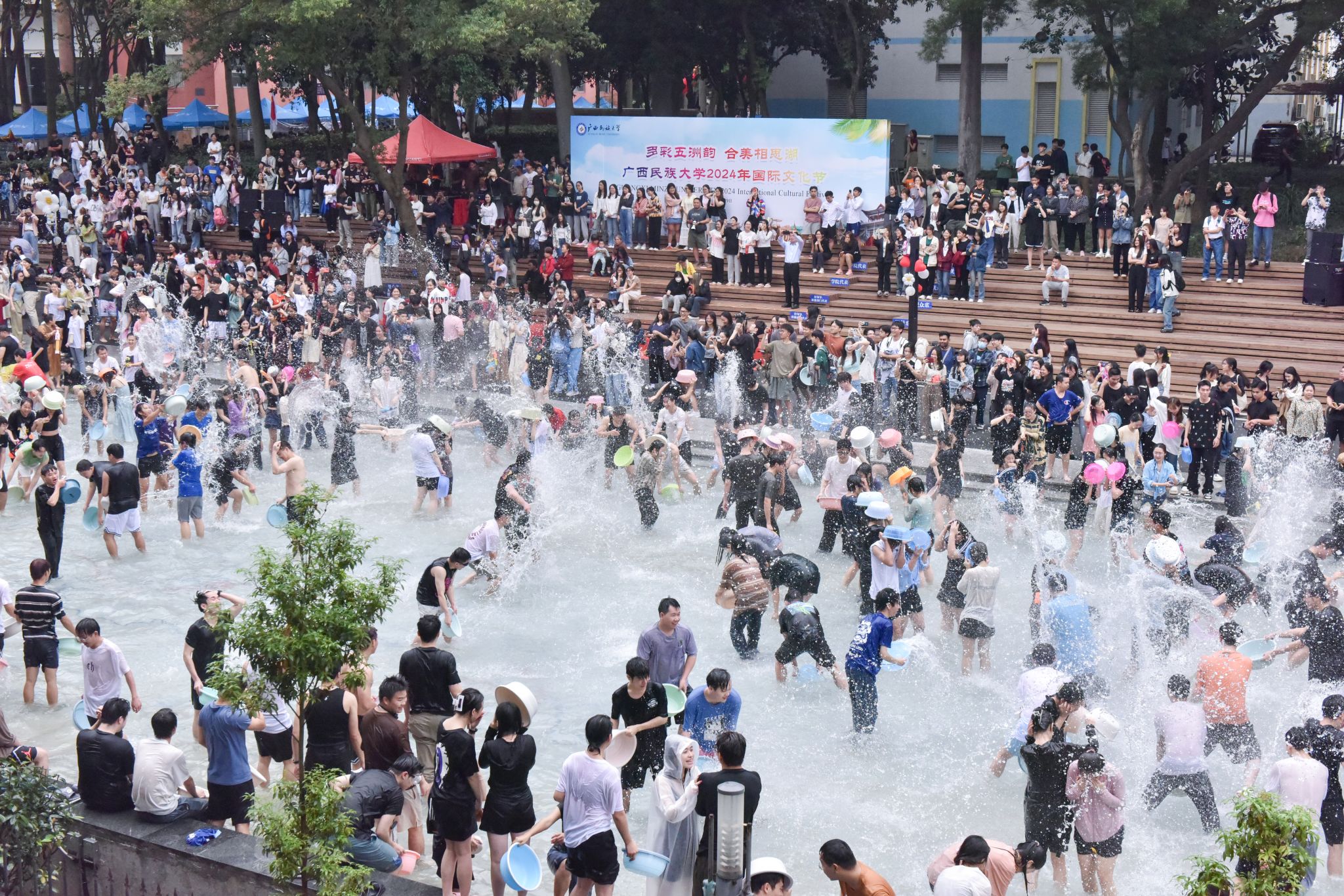 泼水祝福活动正式开始,伴随着动感的旋律,同学们尽情嬉戏,享受着泼水带来的乐趣,感受浓浓的节日祝福。(初审:肖海芹 编辑:林欢 校对:樊欣旺 复审: 荣子卿 终审:王文娟)