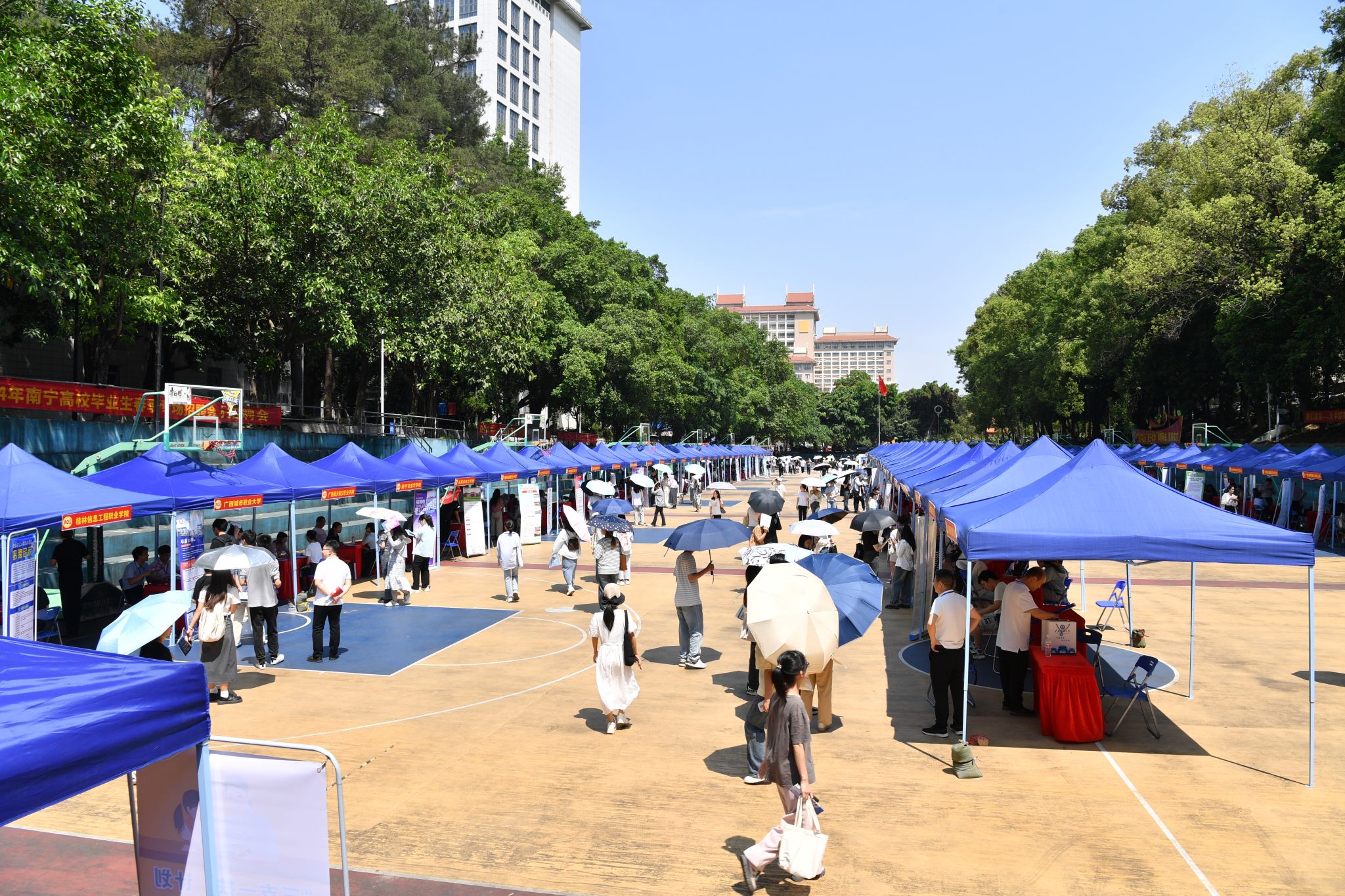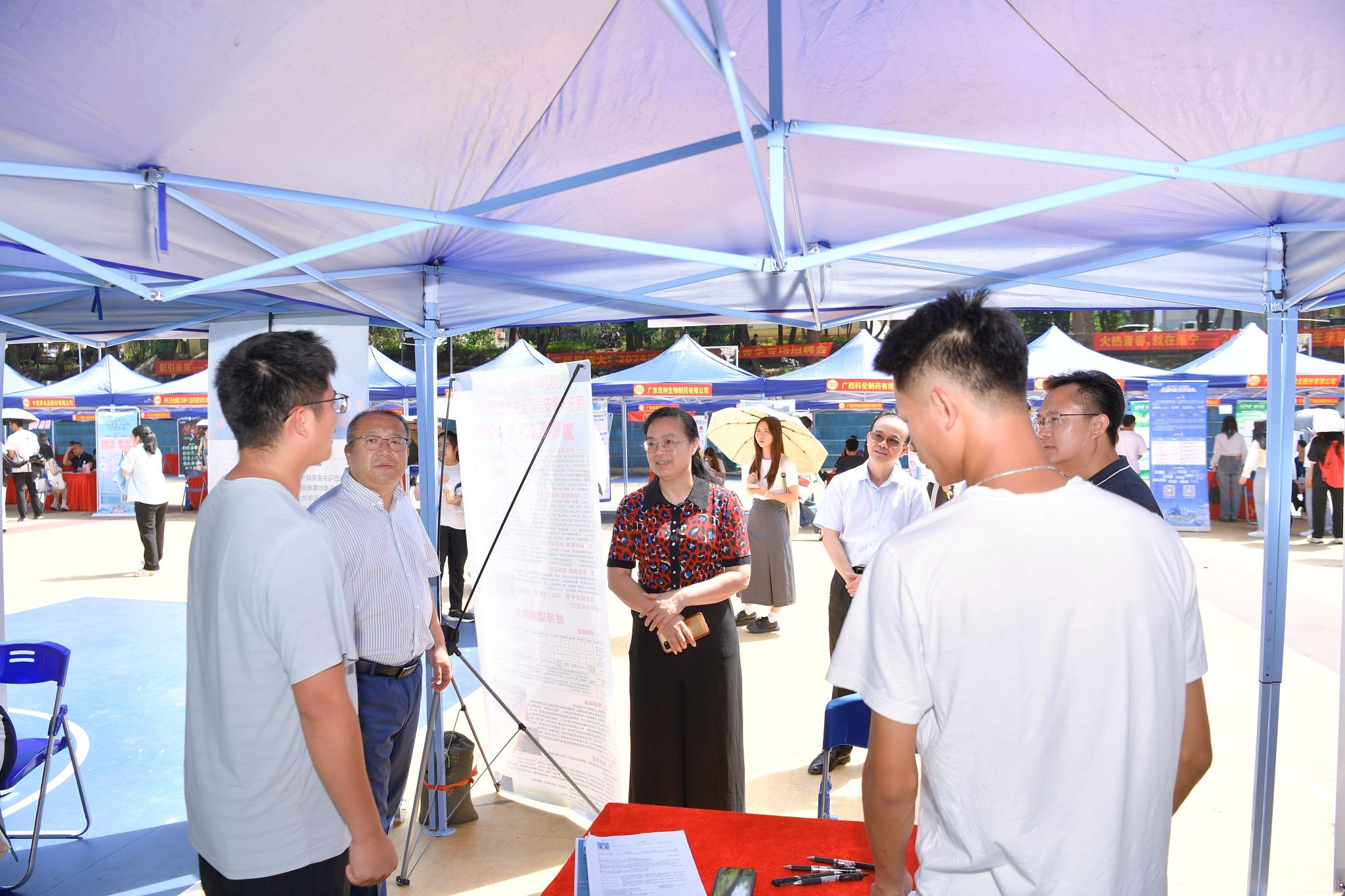 【大学生通讯社报道】4月16日,2024届高校毕业生来邕留邕就业专项行动暨beat365亚洲体育官方网站春季专场招聘会在beat365亚洲体育官方网站相思湖校区灯光球场举行。校长韦仕珍,副校长姜明国等领导到场了解招聘情况。