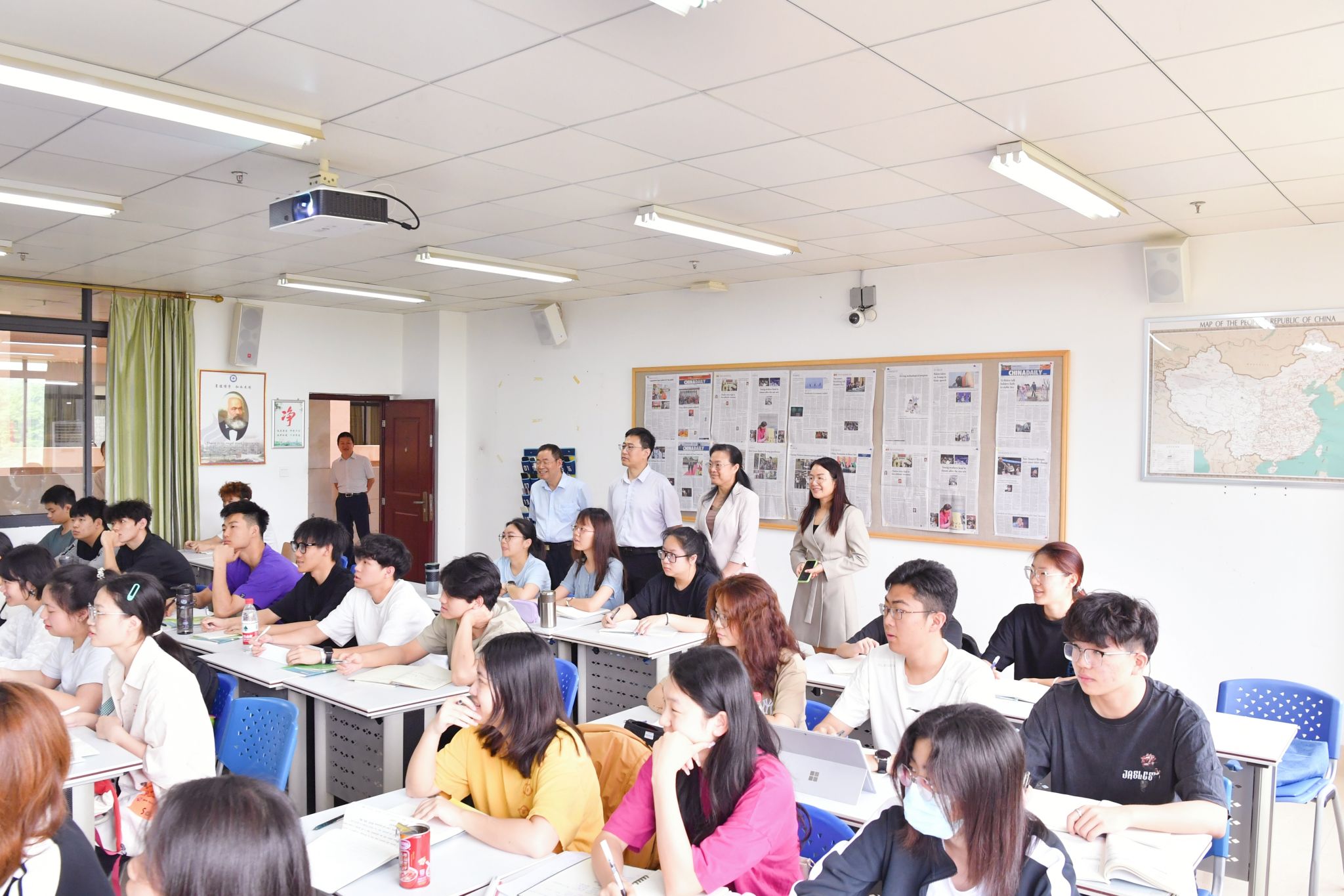 韦仕珍实地察看中英合作办学项目办学环境、外教课堂,听取国际教育学院负责人工作汇报,了解学院办学情况、团队建设、发展规划和本科教育教学审核评估工作情况。