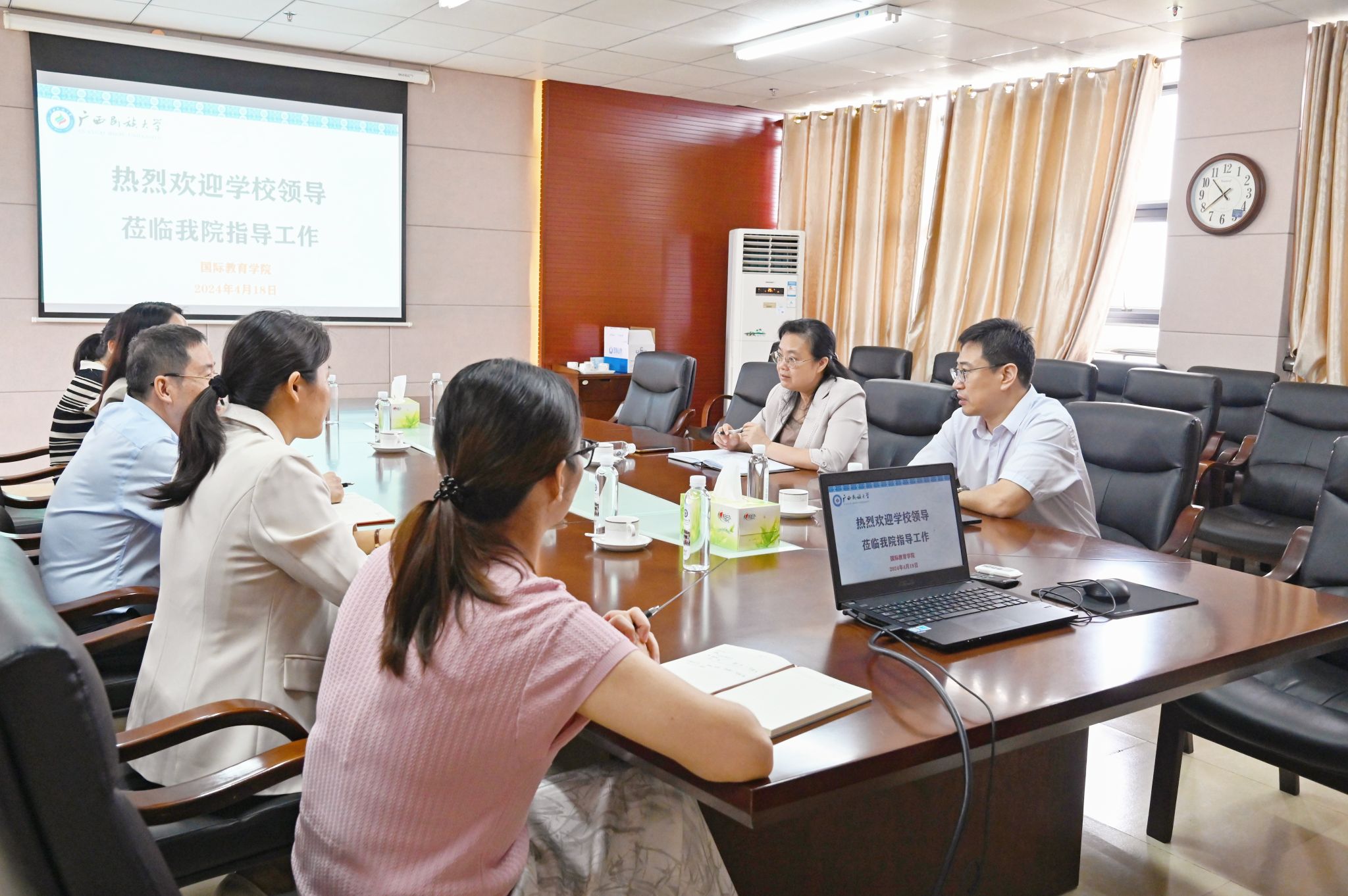 【大学生通讯社报道】4月18日上午,校长韦仕珍到国际教育学院调研指导工作,副校长高兴宇陪同调研。