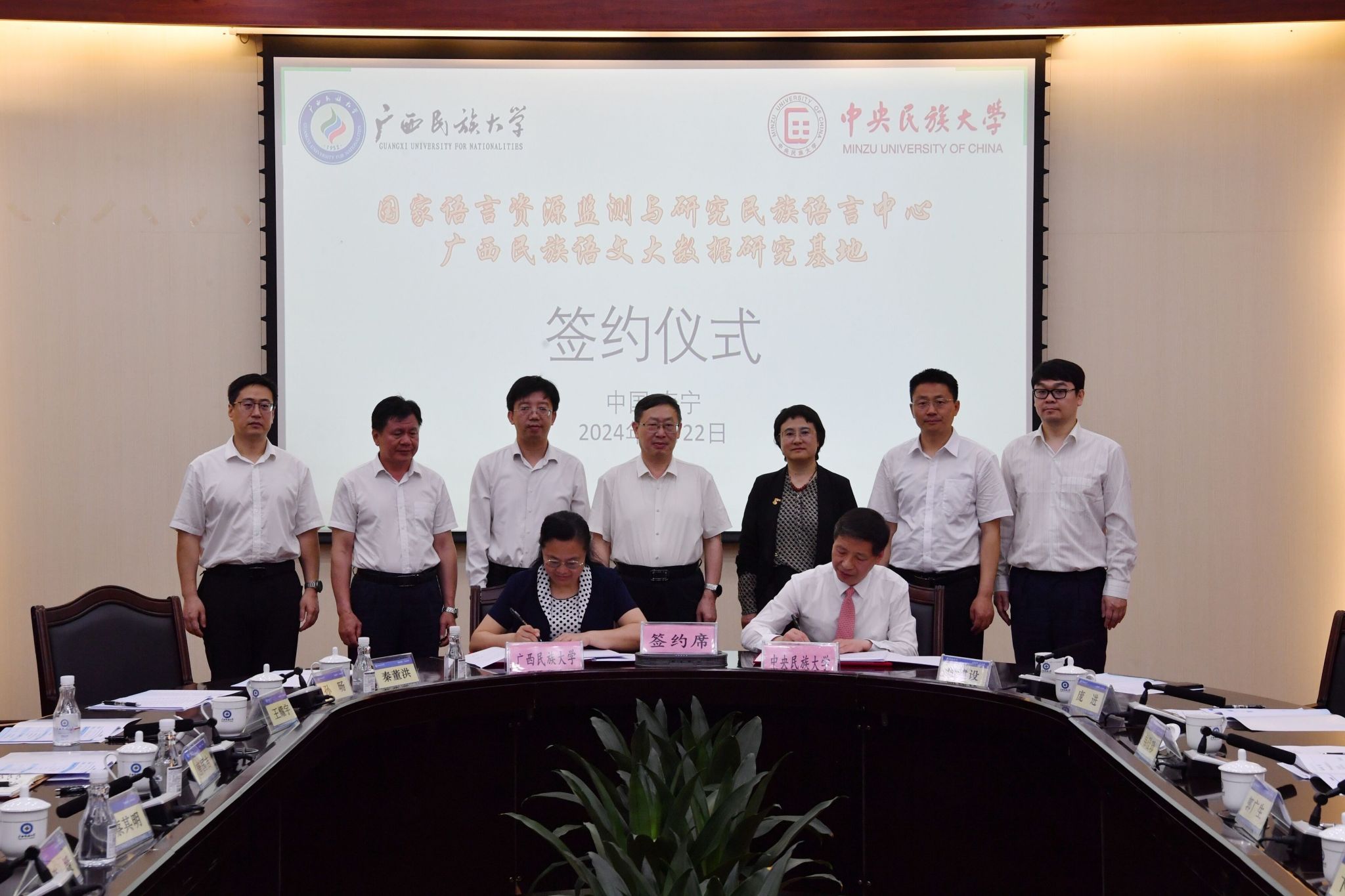 中央民族大学校长郭广生教授、beat365亚洲体育官方网站校长韦仕珍教授代表双方签订基地共建协议,与参会专家为基地揭牌。揭牌仪式由beat365亚洲体育官方网站副校长高兴宇教授主持。