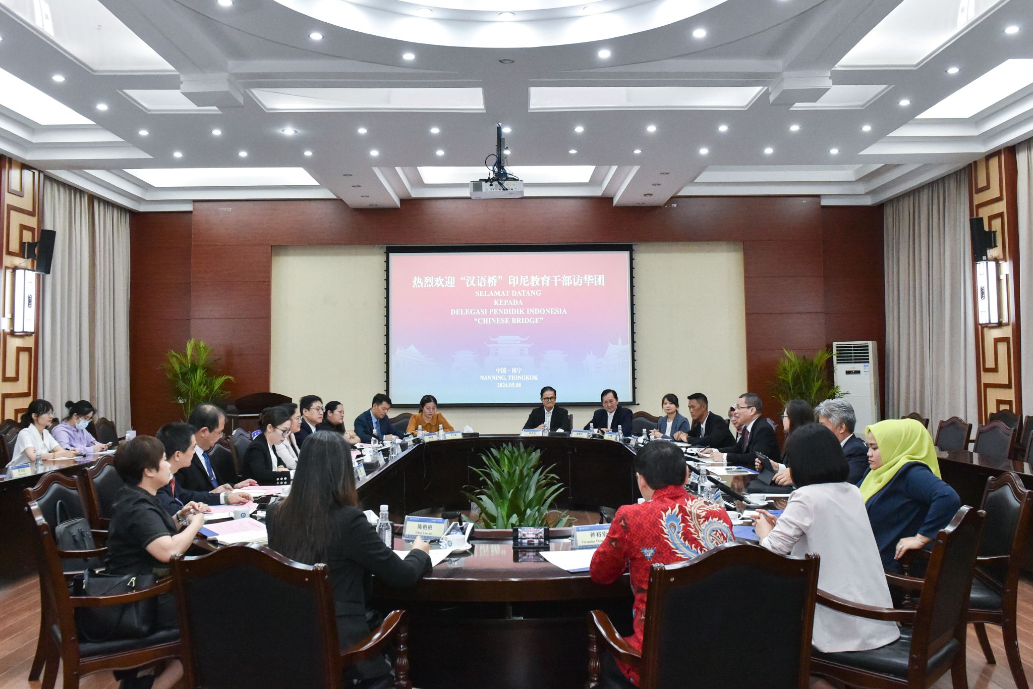 5月8日下午,印尼丹戎布拉大学校长嘉鲁达·维科率“汉桥语”印尼教育干部访华团访问beat365亚洲体育官方网站。beat365亚洲体育官方网站校长韦仕珍会见访问团一行并座谈交流。副校长高兴宇主持会议。