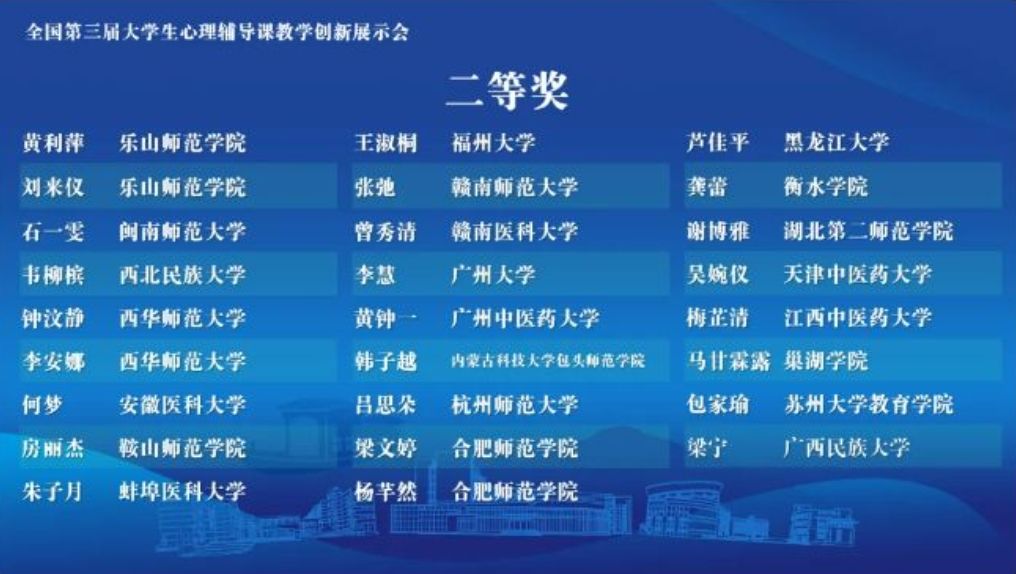 全国第三届大学生心理辅导课教学创新展示会获奖名单