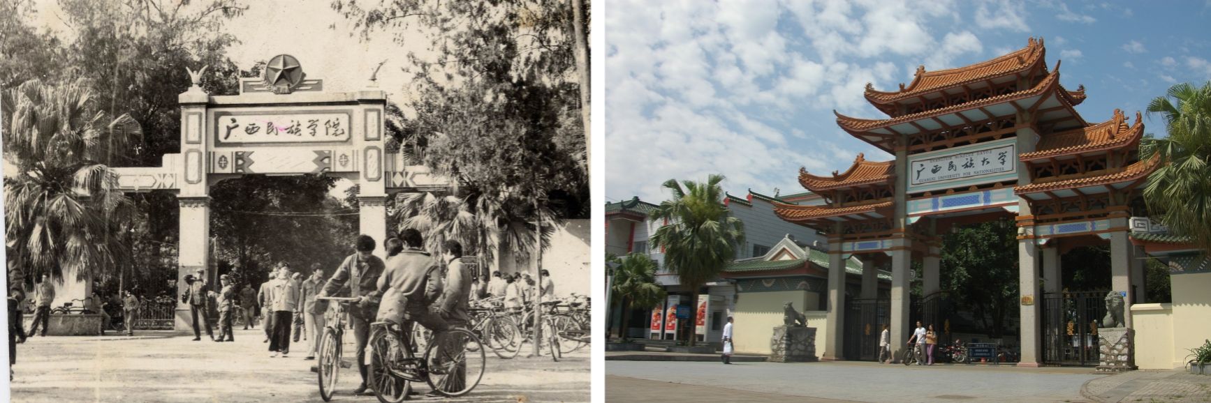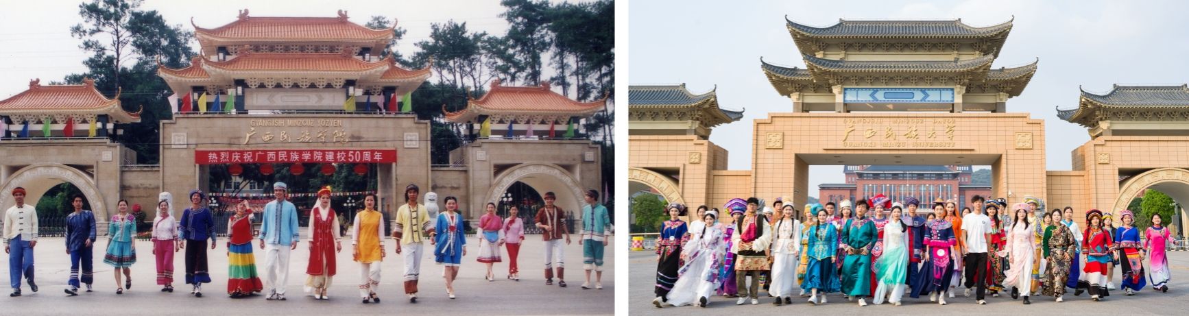 【大学生通讯社报道】岁月悠悠,时间长河,涤荡着一代又一代广西民大学子的心,却冲不淡浓浓的母校情、师生情、校友情。72年来,民大如一颗种子,扎根在八桂大地,沐浴着党和国家的光辉,正在不断茁壮成长。从历史的黑白剪影到如今的色彩斑斓,每一帧都记录着学校翻天覆地的变化,让我们跟随时光的镜头,回望学校的风貌变迁。(初审:潘之铭 编辑:秦浩铭 邓思馨 校对:黎潘东 复审:荣子卿 终审:王文娟)