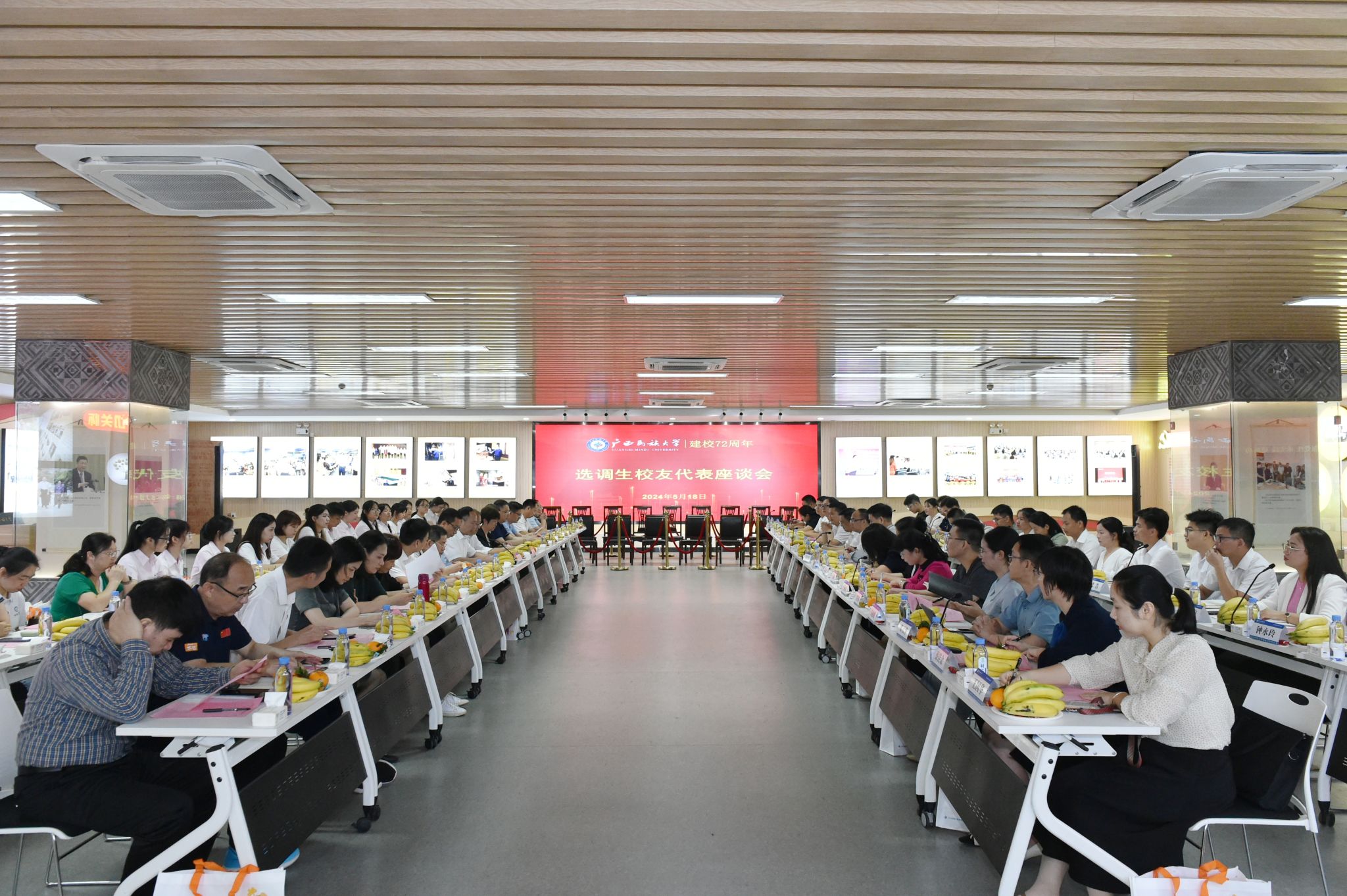【大学生通讯社报道】5月18日上午,beat365亚洲体育官方网站选调生校友代表座谈会在新时代“我与祖国共成长”党团主题活动文明实践所召开。副校长何立荣、姜明国,共青团广西区委二级巡视员、组织部部长刘宇红等校友代表出席会议,有关学院和部门负责人及在校生代表参加会议。会议由姜明国主持。