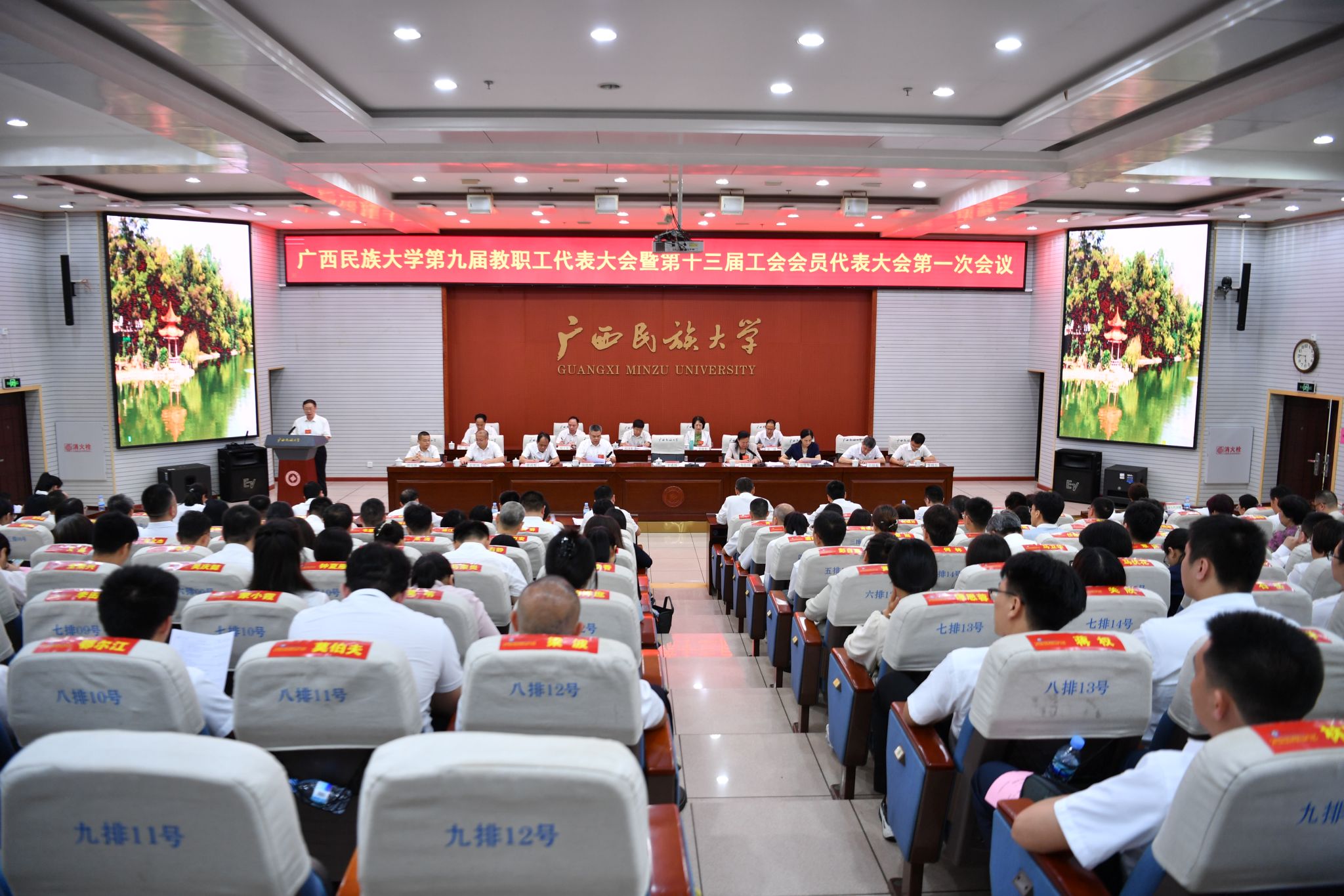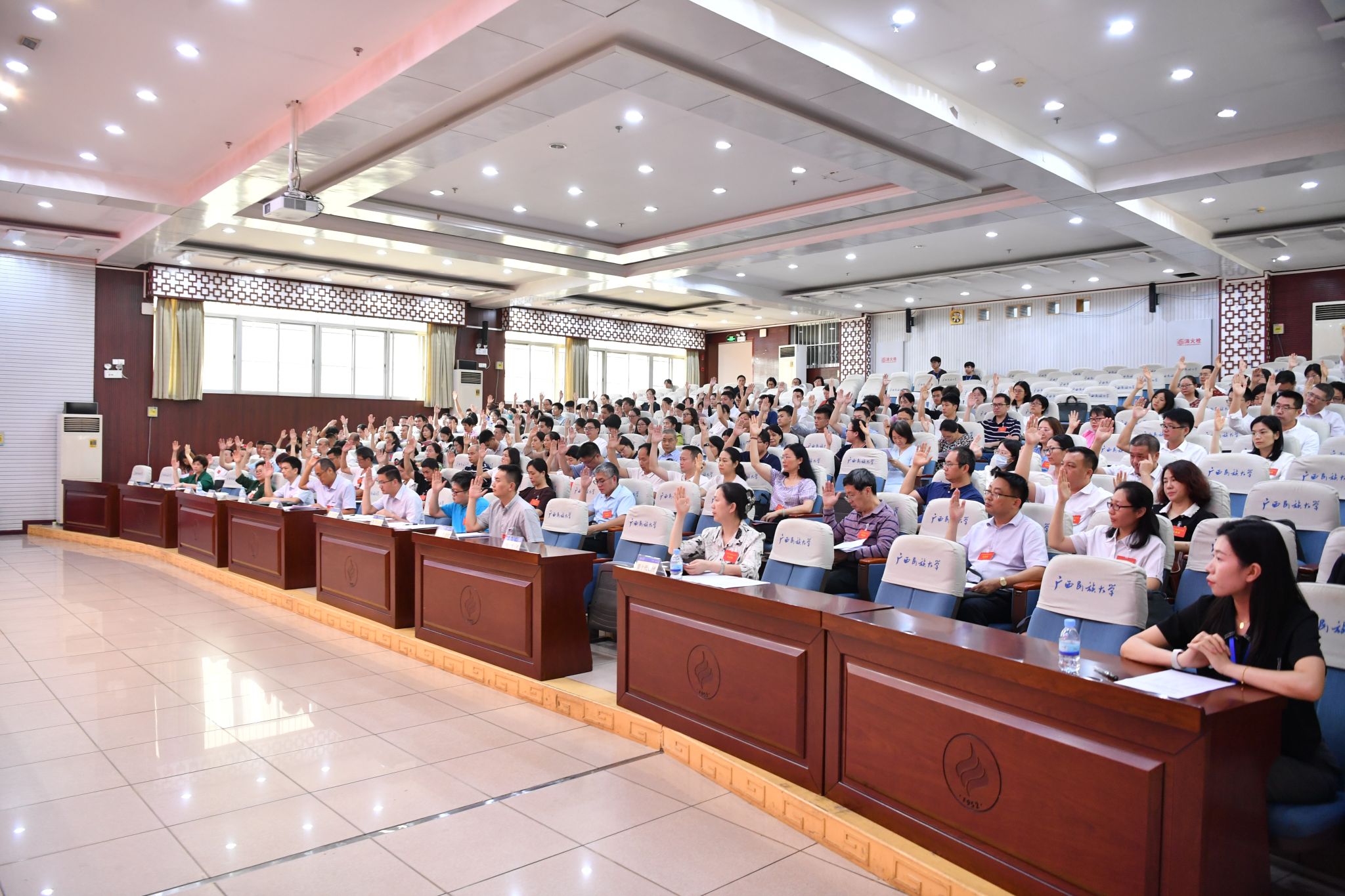 5月24日—25日,beat365亚洲体育官方网站第九届教职工代表大会第一次会议在相思湖校区召开。学校党委书记卞成林,校长韦仕珍,校领导陈铭彬、韦雪芳、邓国彬、蔡高根、黄晓娟、吕俊彪、何立荣、姜明国、高兴宇及第九届教职工代表参加大会。