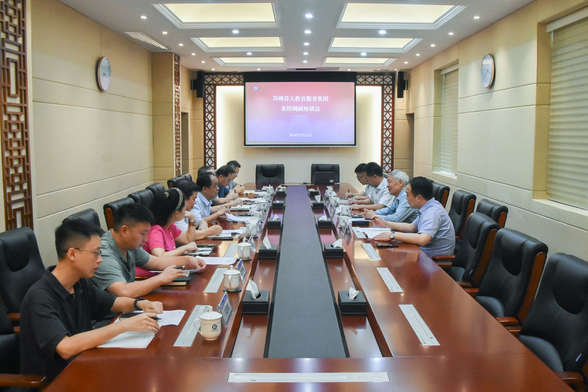 【苏州苏大教育服务投资发展(集团)有限公司到beat365交流】5月21日,副校长蔡高根会见苏州苏大教育服务投资发展(集团)有限公司总裁、中国教育后勤协会专家委员会秘书长韦曙和一行。双方表示,将在后勤管理领域进一步开展合作,充分利用大数据、人工智能等先进科学技术,推动精细化服务,深耕现代后勤管理领域,共同推动高校后勤高质量发展。(初审/卢扬奎 复审/荣子卿 终审/王文娟)