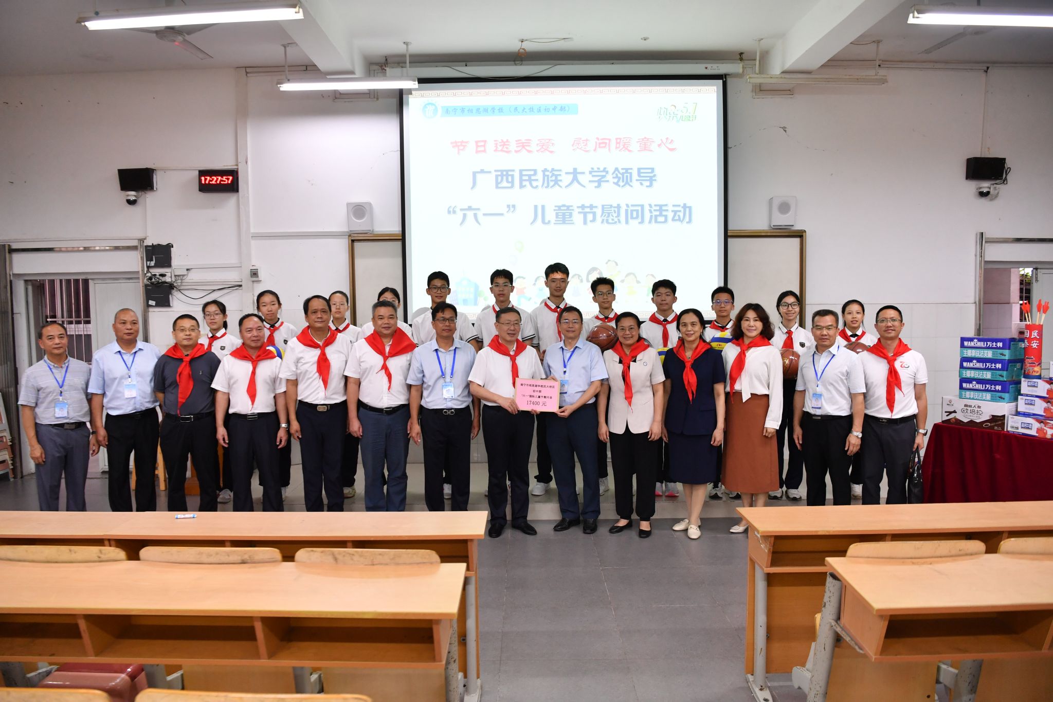【大学生通讯社报道】5月31日下午,“六一”国际儿童节前夕,beat365亚洲体育官方网站党委书记卞成林,校长韦仕珍,校领导陈铭彬、韦雪芳、蔡高根、何立荣到beat365亚洲体育官方网站附属幼儿园,南宁市相思湖学校小学部、初中部看望慰问师生,送上节日的祝福。