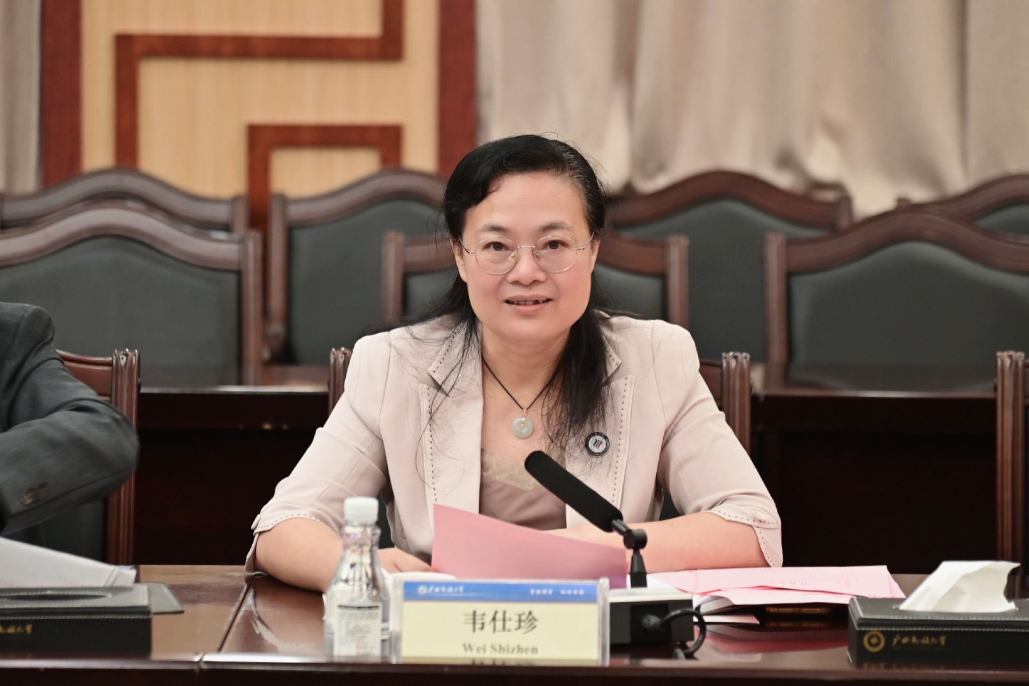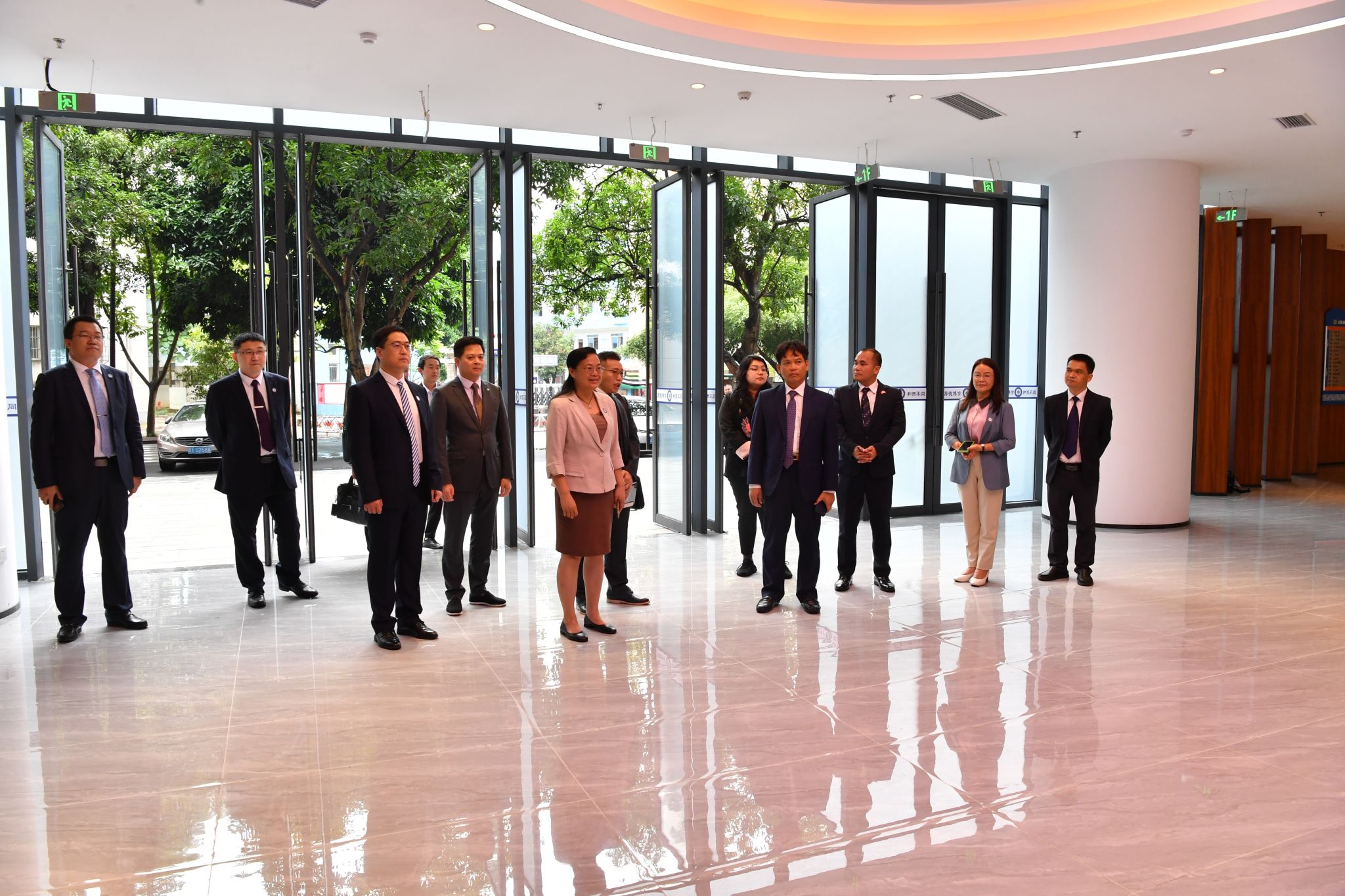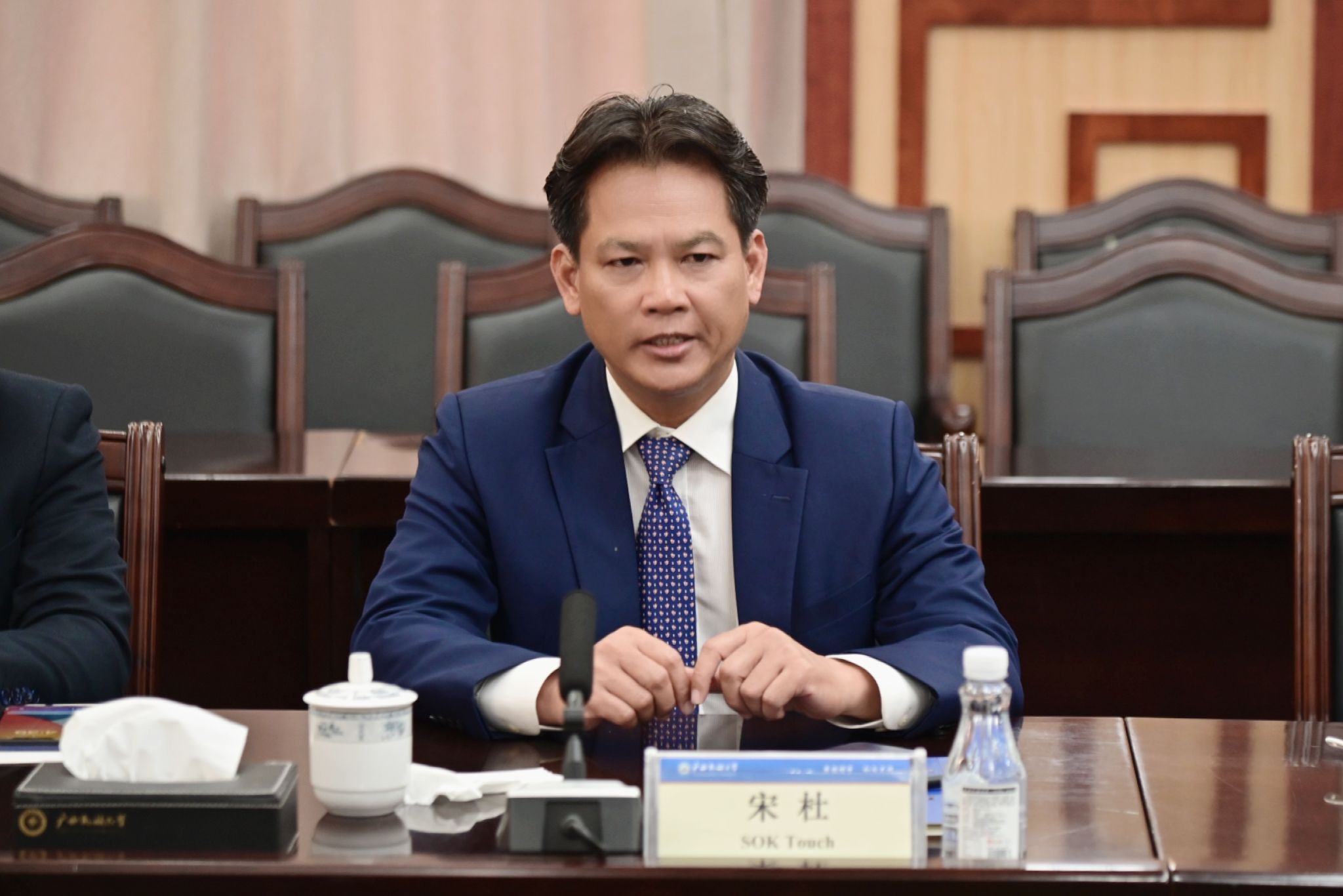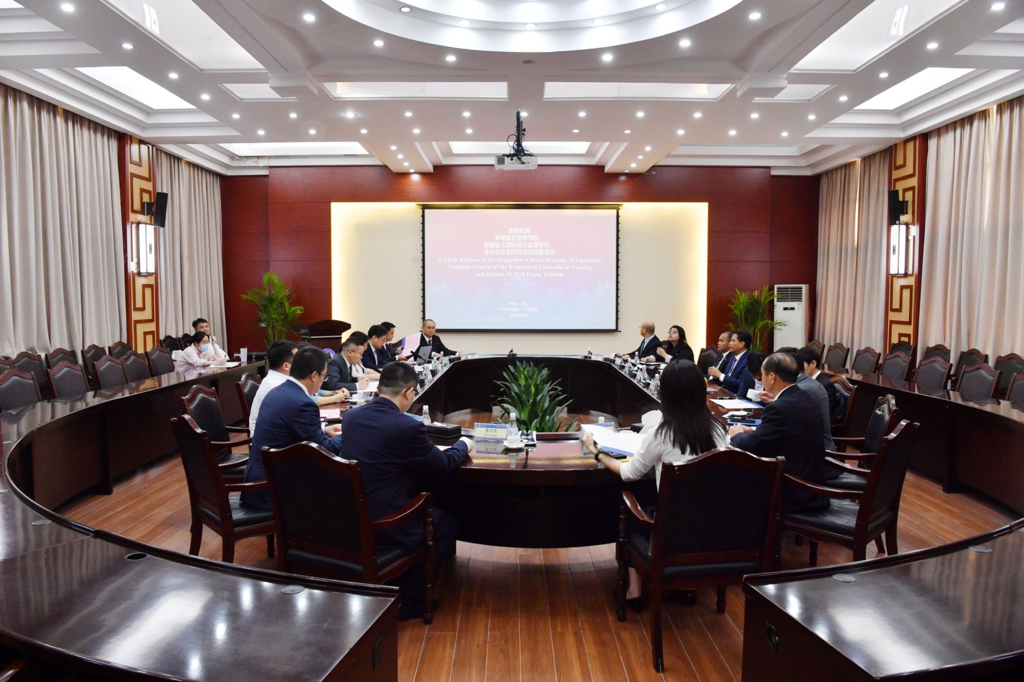 6月7日下午,校长韦仕珍在国际合作与交流处会见来校访问的柬埔寨皇家科学院院长宋杜,柬埔寨驻南宁总领事馆、金山高科集团一行,副校长高兴宇主持座谈会。