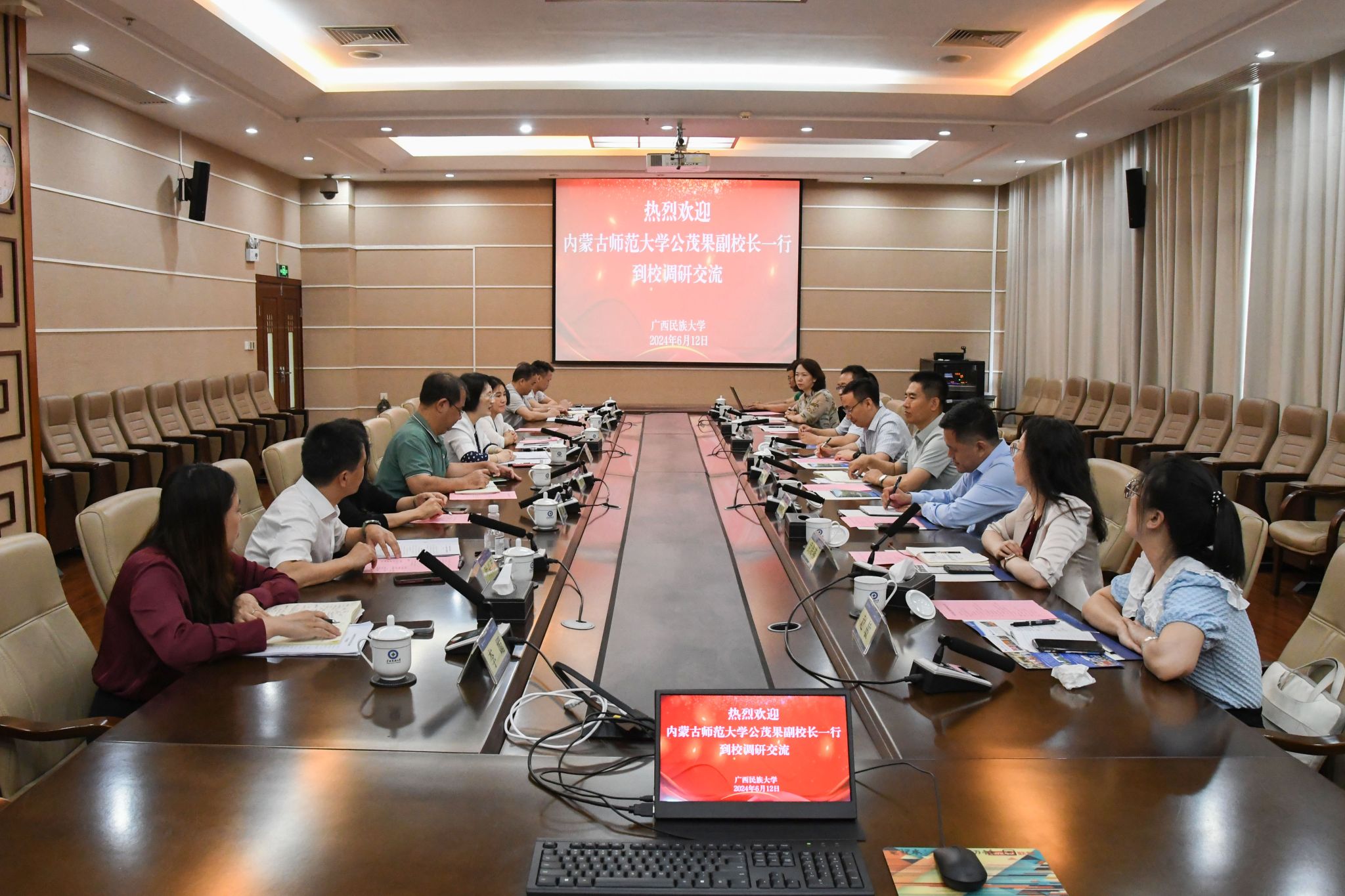 【内蒙古师范大学到beat365交流】6月12日,副校长黄晓娟会见内蒙古师范大学副校长公茂果一行。双方就东盟学院及中国-东盟区域国别研究院建设、发展规划与综合改革、人事人才管理、合作办学等进行交流。(初审/吴成林 复审/ 荣子卿 终审/王文娟)