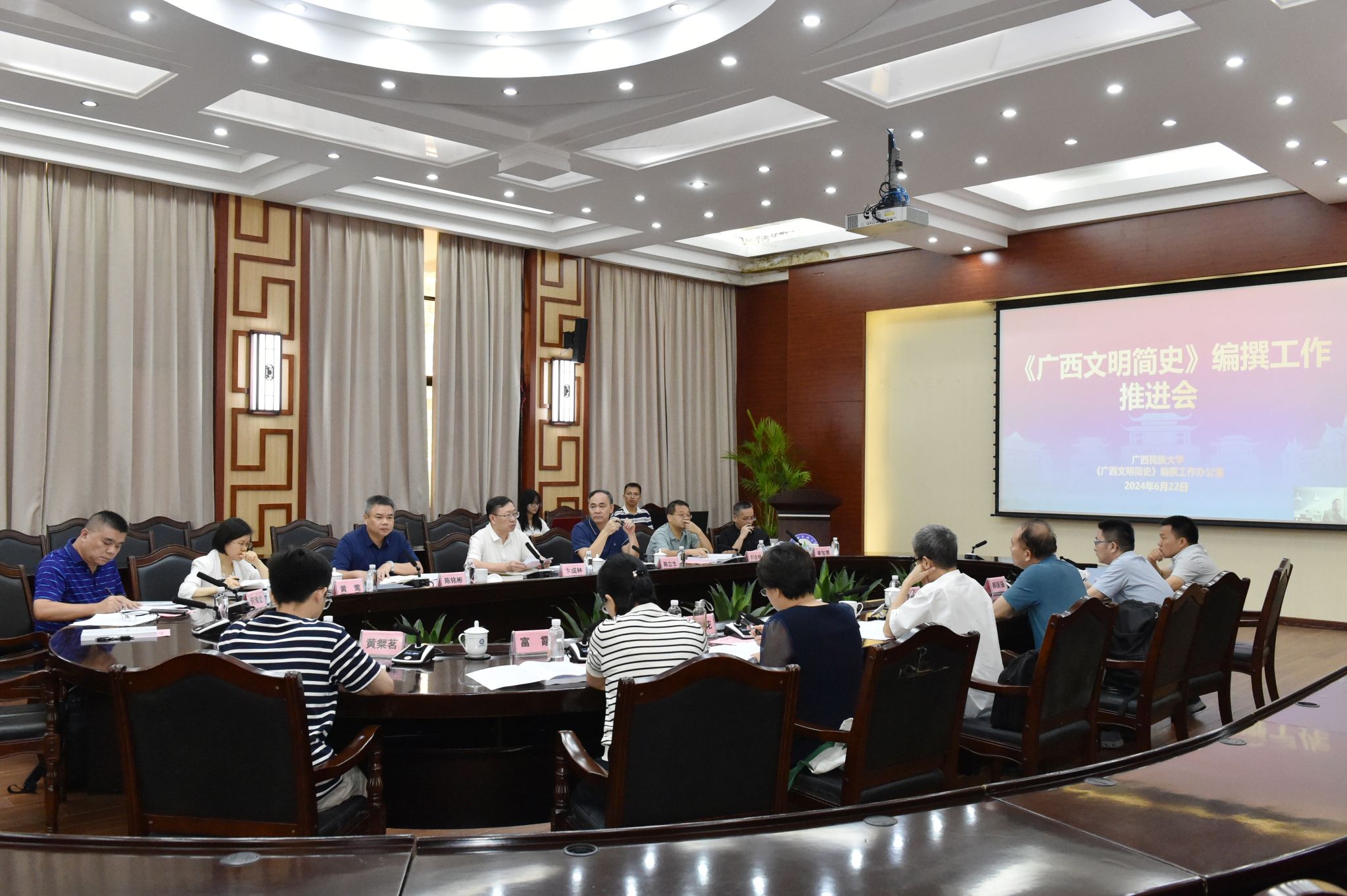 会上,各章负责人汇报《广西文明简史》编撰进度。