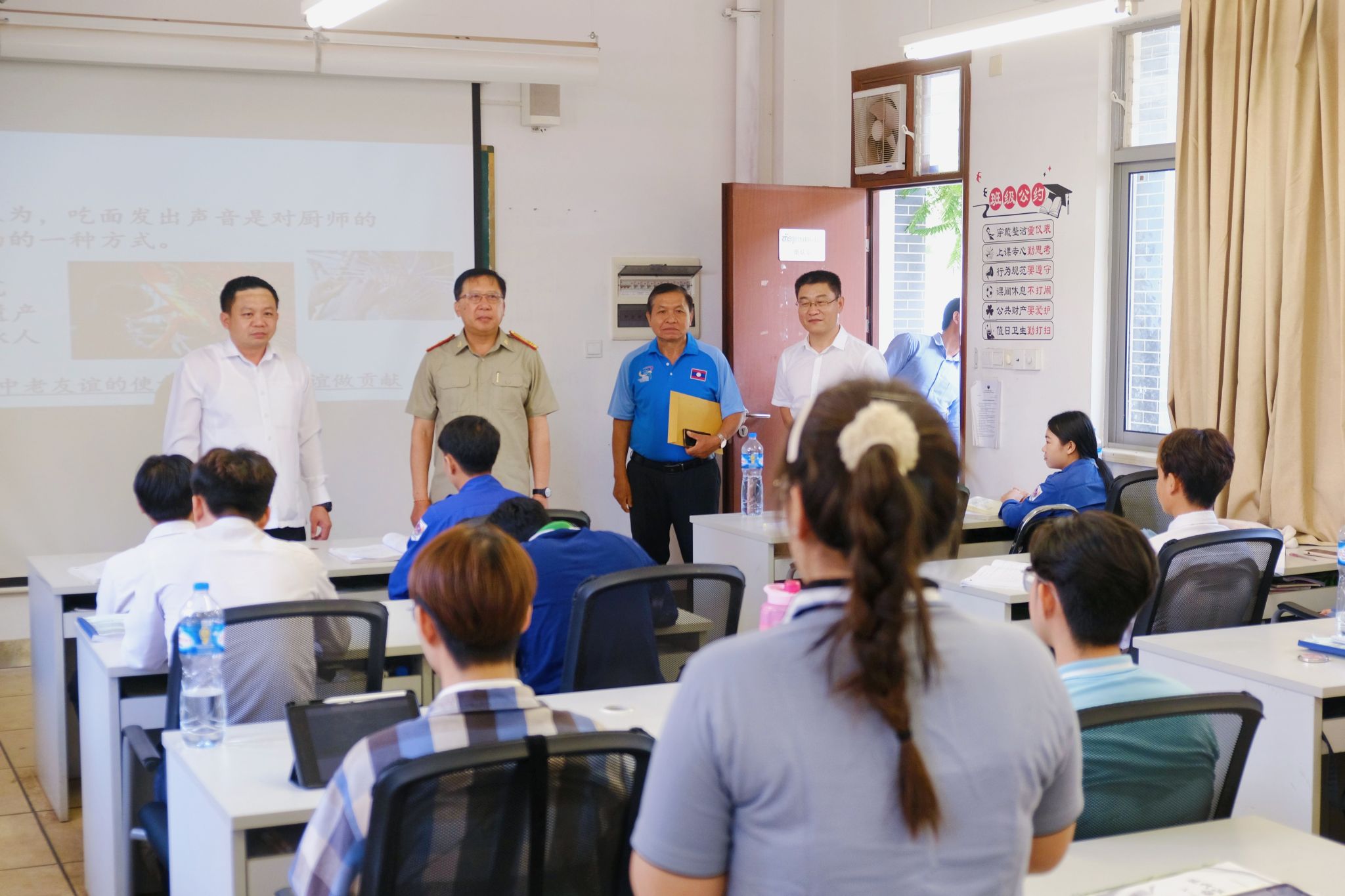 6月19日,老挝教育体育部副部长京玛诺·蓬玛哈赛到老挝国立大学孔子学院考察。