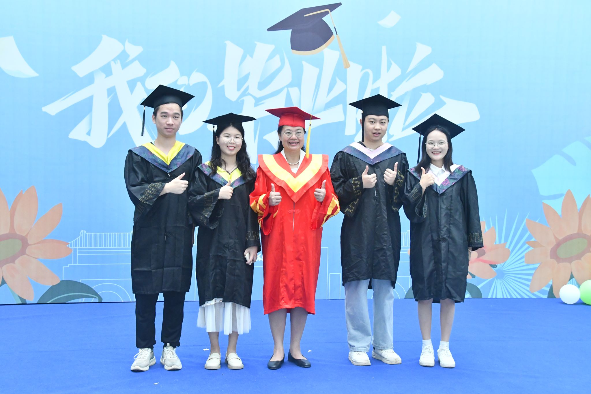 【大学生通讯社报道】离别钟声敲响,毕业如期而至。6月25日上午,校长韦仕珍与毕业生们在相思湖校区文化研习基地同框合影,共同留下青春印记。