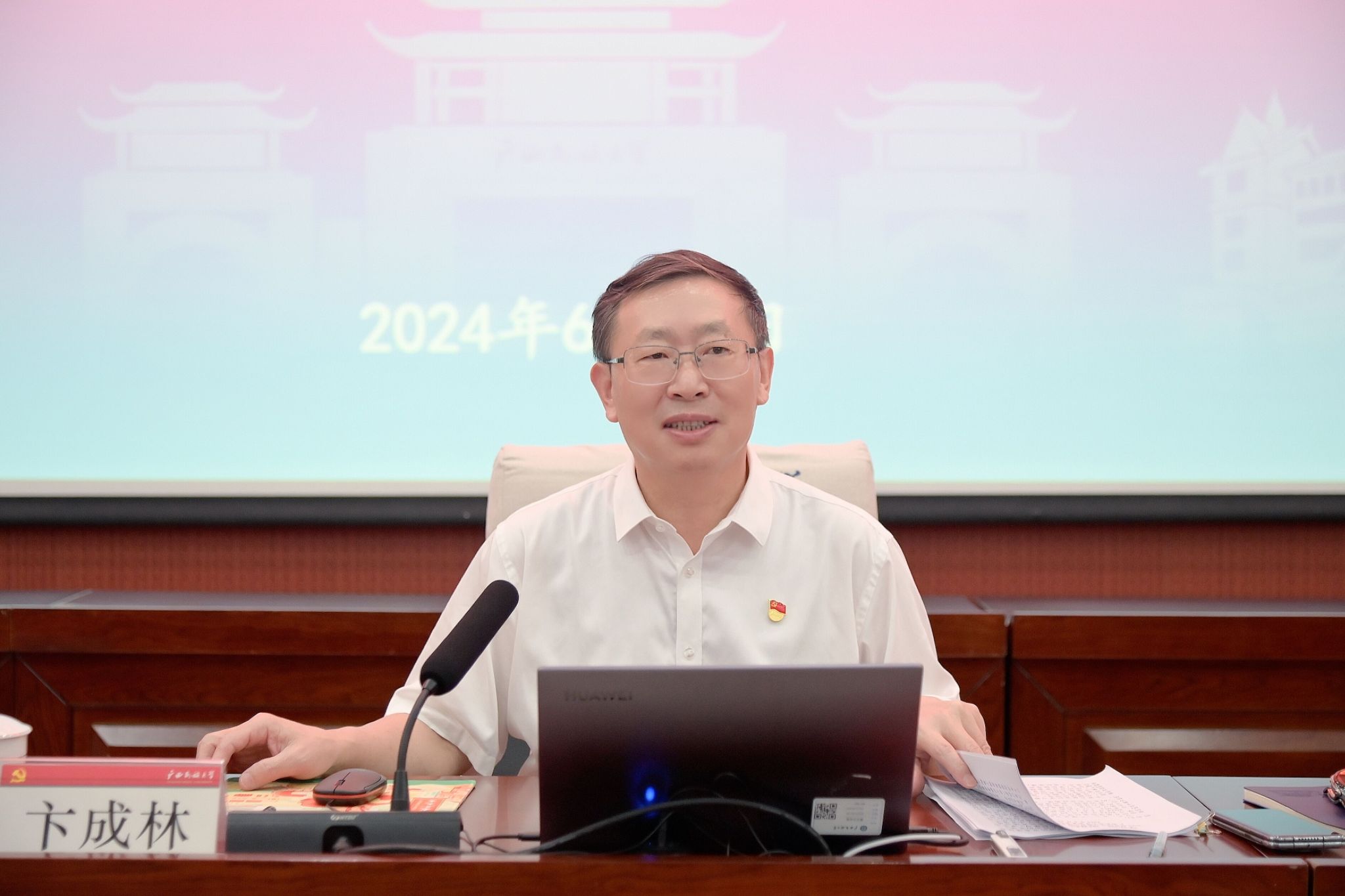 卞成林指出,习近平总书记关于全面加强党的纪律建设的重要论述为加强新时代党的建设、推进党的自我革命指明了前进方向,为正在开展的党纪学习教育提供了根本遵循。党员领导干部要提高政治站位、强化责任担当、深化思想认识,把学习领会重要论述作为党纪学习教育重要任务,深刻领会重要论述的科学内涵和实践要求,结合实际抓好贯彻落实。