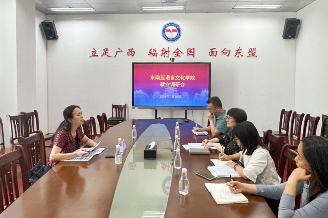 【校领导到东南亚语言文化学院调研2024届毕业生工作】7月10日,校党委副书记、纪委书记韦雪芳到东南亚语言文化学院调研2024届毕业生工作时强调,要高度重视毕业生就业工作,重点做好困难学生就业帮扶工作和毕业生就业观念教育引导,及时更新就业信息,不断拓展新工作岗位,为学生提供高质量就业的机会。(初审/罗玉莲 复审/荣子卿 终审/王文娟)