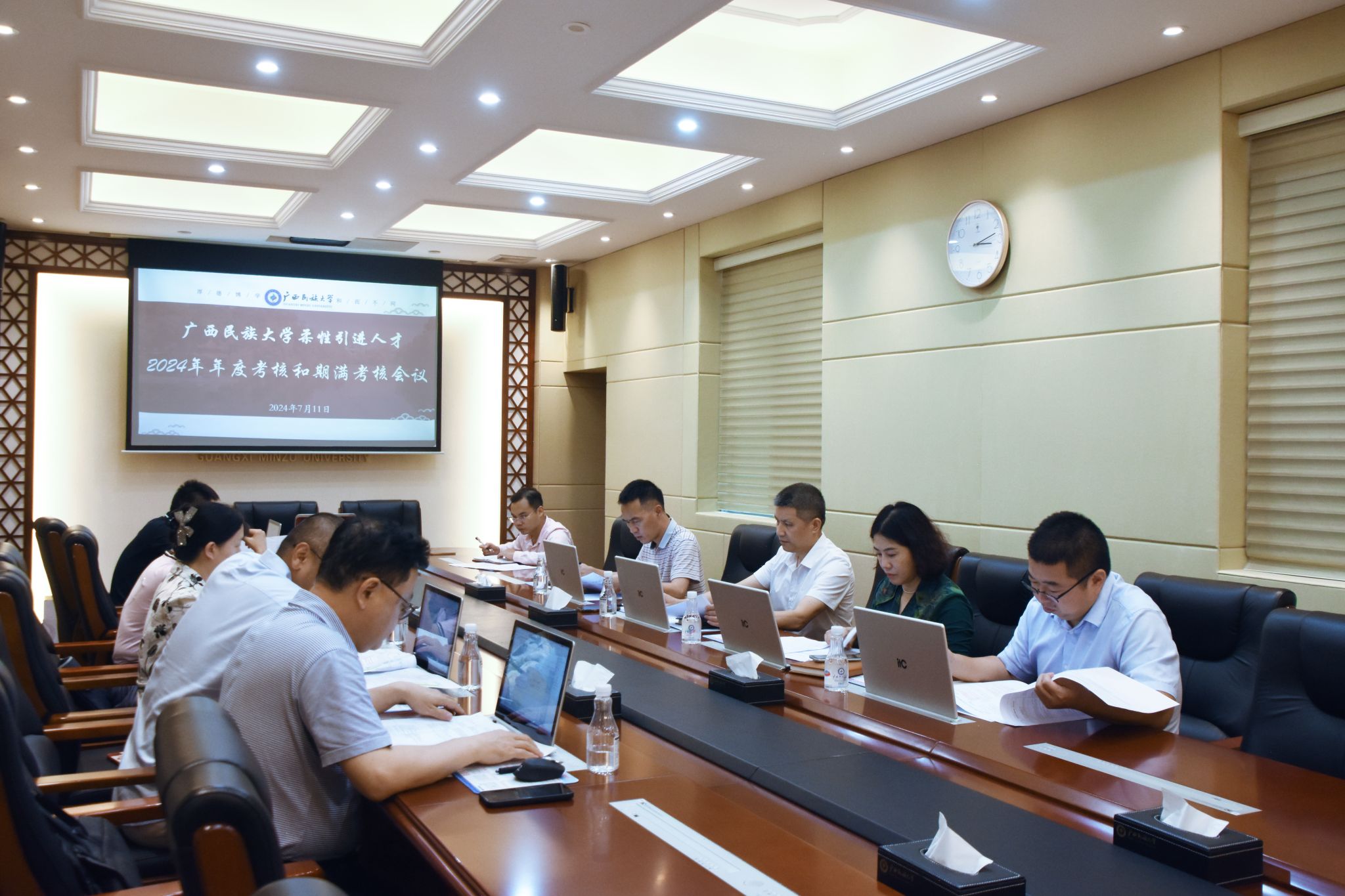 【学校召开柔性引进人才2024年度考核和期满考核会】7月11日,副校长吕俊彪在柔性引进人才2024年度考核和期满考核会上强调,要加大人才引进力度,激发各类人才创新活力,关注引进人才的研究方向与各个学科的契合度,明确培养目标;引进人才要对标对表、带动学科专业提升,丰富学校科研成果。(初审/覃国化 复审/荣子卿 终审/王文娟)