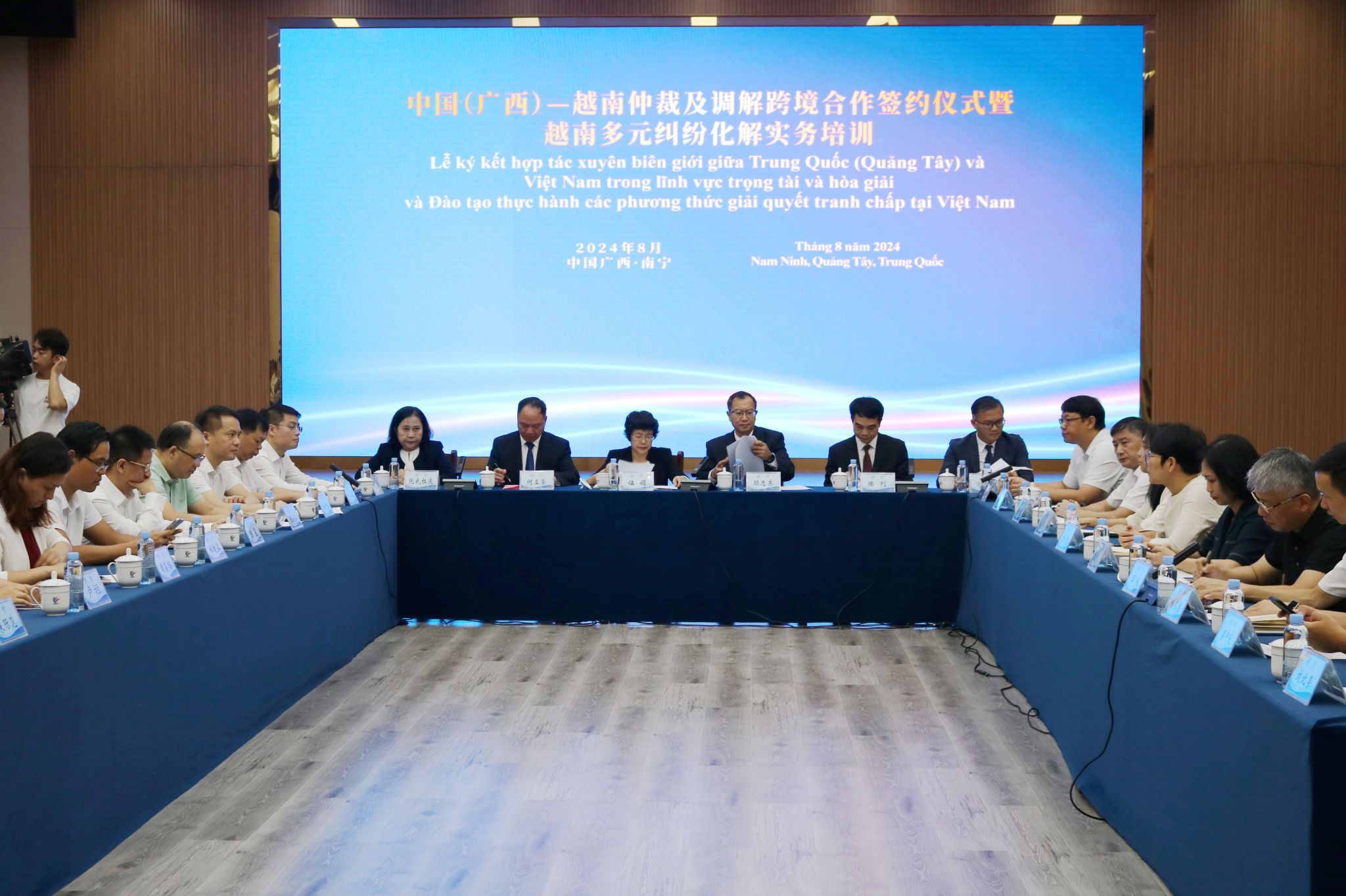 8月2日,中国(广西)-越南仲裁及调解跨境合作签约仪式暨越南多元纠纷化解实务培训在南宁举行,beat365亚洲体育官方网站中国-东盟法学院、广西贸促会、百色仲裁委员会分别与越南商业仲裁中心、越南河内贸易调解中心签署合作备忘录,共同开展商事纠纷多元化解的跨境合作新模式建设。beat365亚洲体育官方网站副校长、中国-东盟法学院院长何立荣出席活动并签订协议。