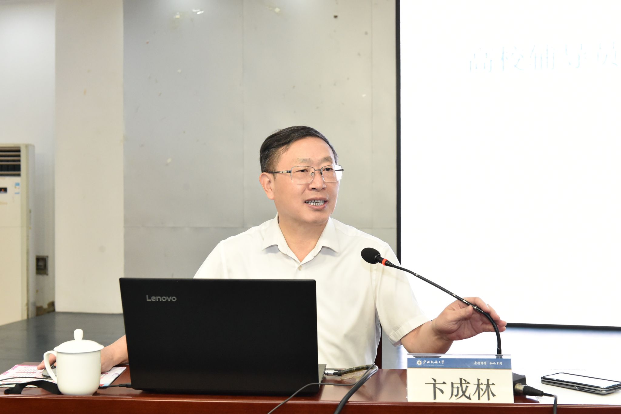 邓国彬结合学校思想政治工作和辅导员队伍建设,讲授“坚定不移做好新时代高校意识形态工作”专题。在开班仪式上,邓国彬对全体辅导员提出要求,要深刻把握立德树人的内涵,不断提升能力素养,增强履职能力,深入学习工作业务知识,增强工作自信心,共同建设更具专业化、职业化的辅导员队伍。