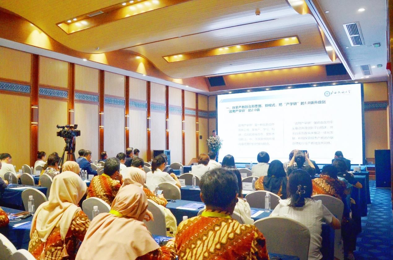 在由中国-东盟中心指导、北京市教育国际交流协会和贵州省教育国际交流协会主办的“非通用语人才培养服务中国-东盟产教融合发展会议”上,韦仕珍代表中方院校作题为“聚焦面向东盟的人才培养与区域国别研究 推动中国-东盟产教融合发展”的报告。韦仕珍表示,中国-东盟合作已成为亚太区域合作的成功典范,成为构建人类命运共同体的生动例证。深化产教融合,对推动中国经济社会高质量发展、服务建设更为紧密的中国-东盟命运共同体具有重要意义。高校要积极探索“政用产学研”一体推进的产教融合新思路、新模式,加强中国-东盟语言文化、产教融合和人文交流平台建设,打造产教融合示范高校。