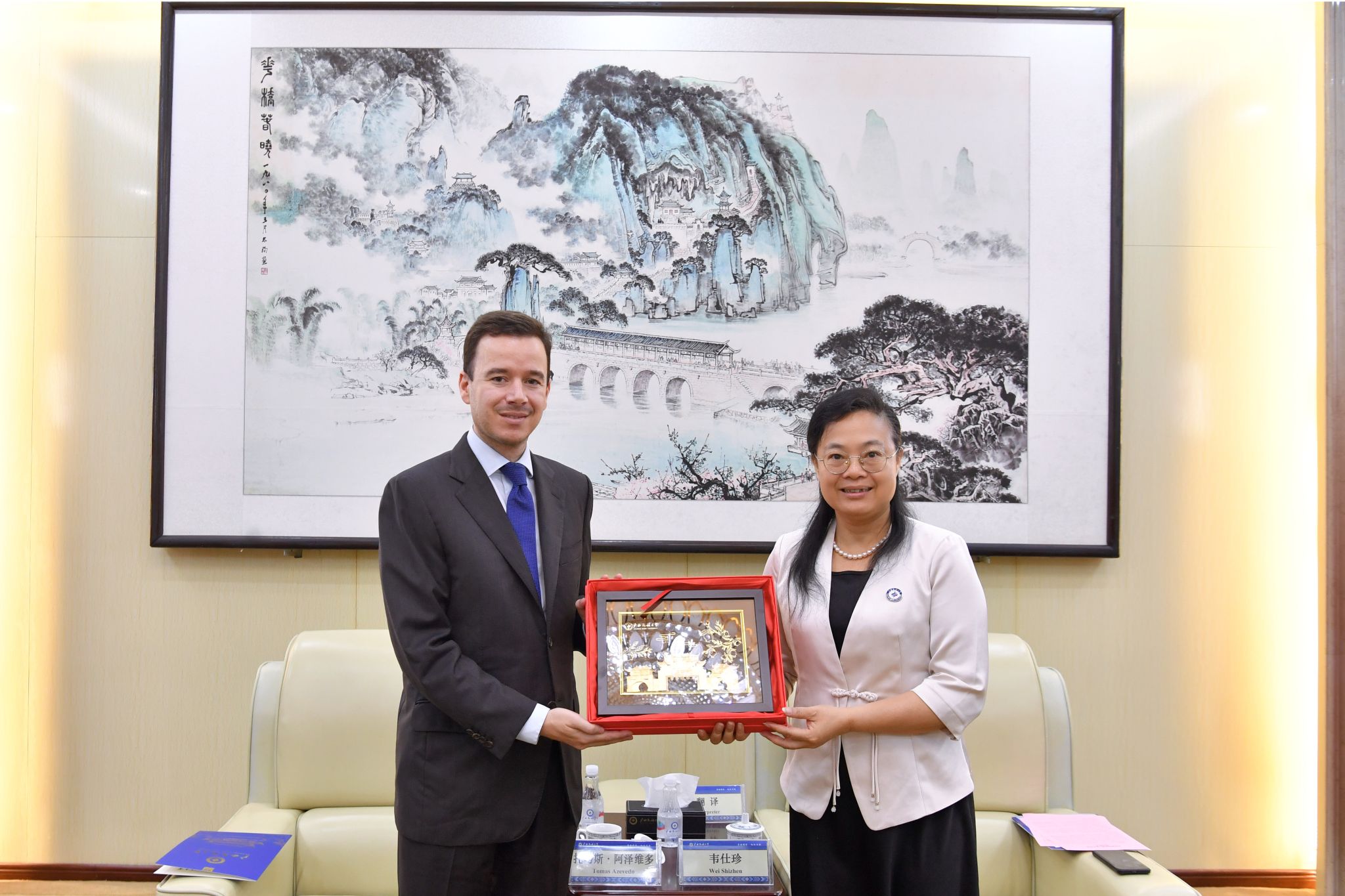 【大学生通讯社报道】9月4日上午,校长韦仕珍在国际合作与交流处接待室会见来校访问的葡萄牙驻广州总领事托马斯·阿泽维多。