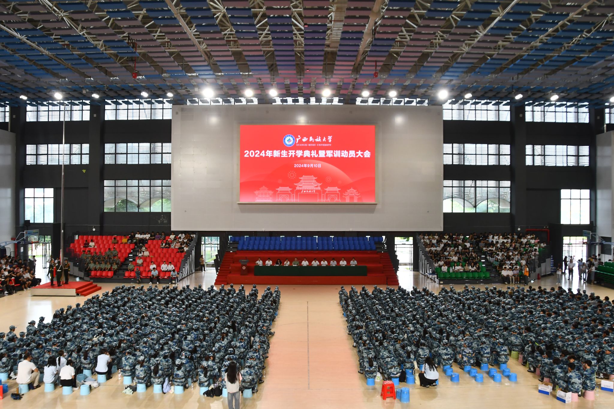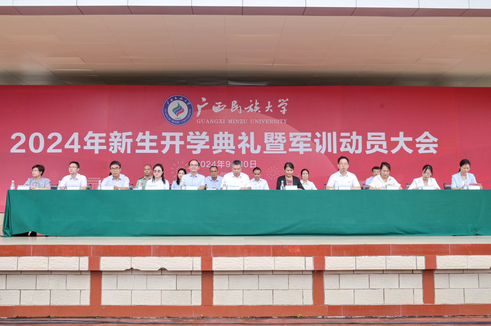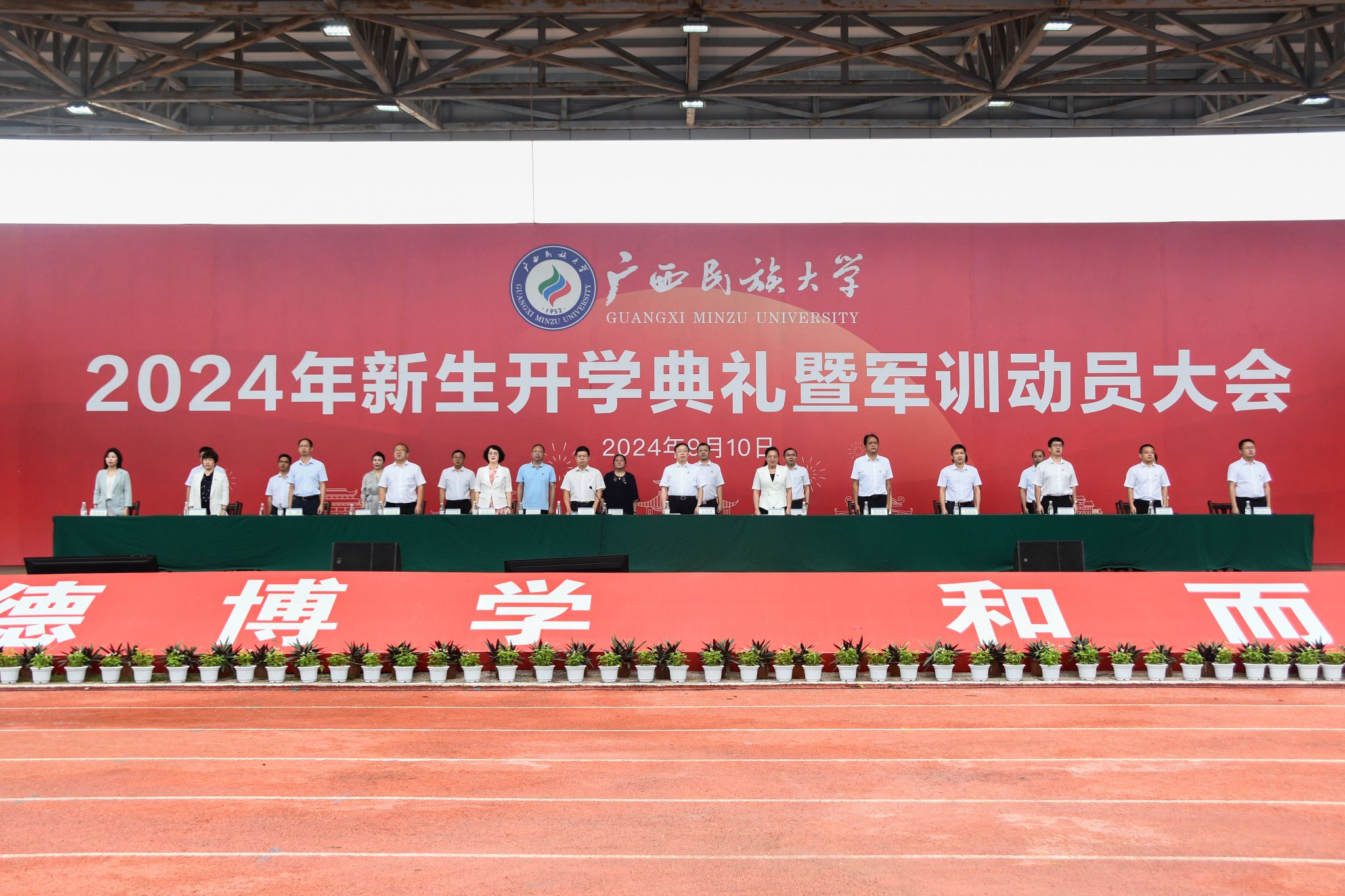 【大学生通讯社报道】9月10日上午,beat365亚洲体育官方网站2024年新生开学典礼暨军训动员大会在思源湖校区李宁田径场、相思湖校区田径场、武鸣校区体育馆同步举行。学校党委书记卞成林,校长韦仕珍,校领导陈铭彬、邓国彬、蔡高根、黄晓娟、吕俊彪、何立荣、姜明国、高兴宇,学校有关职能部门、各学院负责人,教师代表,2024级全体新生参加典礼。