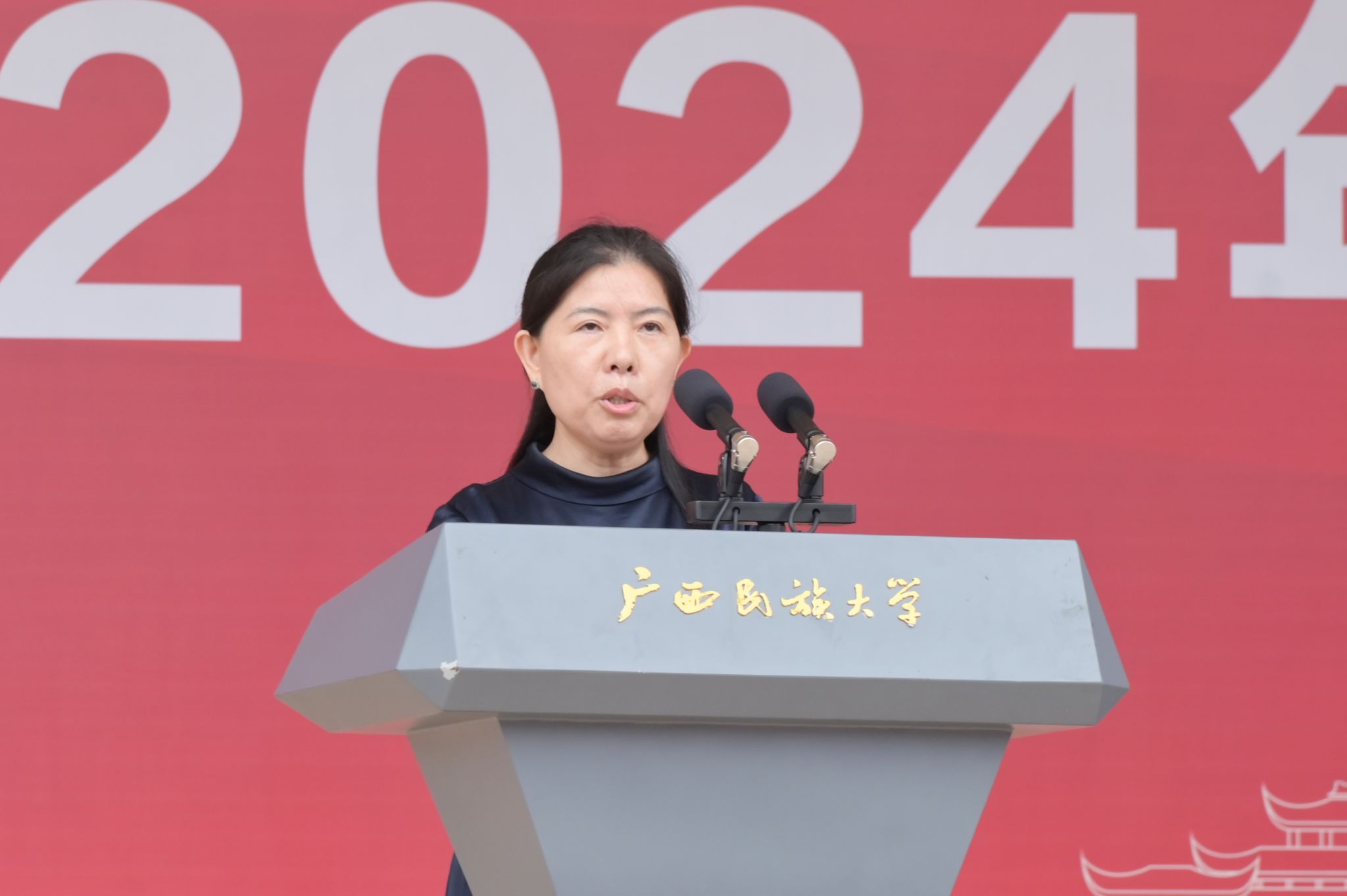韦仕珍向新同学表示欢迎和祝贺,对全体教师致以节日祝福。她表示,建校以来,学校累计培养近 38 万名“下得去、留得住、干得好”的专业人才,被誉为“少数民族干部的摇篮”,为维护国家统一和边疆稳定、促进民族团结进步和经济社会发展做出了积极贡献。民大人矢志不渝、初心不改,既体现“服务国之大者,助力民族复兴”的家国情怀,又展现“扎根八桂大地,培育国家栋梁”的担当精神。民大人始终牢记习近平总书记的殷殷嘱托,让青春向下扎根,向上生长,肩负时代赋予的重任,为“以中国式现代化全面推进强国建设、民族复兴伟业”而砥砺奋进。
