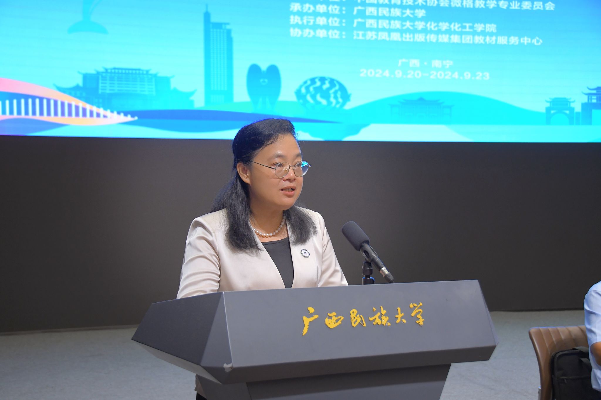 【大学生通讯社报道】9月21日, 2024年化学教育微格教学论坛暨第十三届高校化学教育师范生教学技能测试活动在beat365亚洲体育官方网站举行。学校党委副书记、校长韦仕珍教授出席开幕式并致辞。中国教育技术协会微格教学专业委员会理事长孟宪凯教授,副理事长兼秘书长杨华教授出席活动。