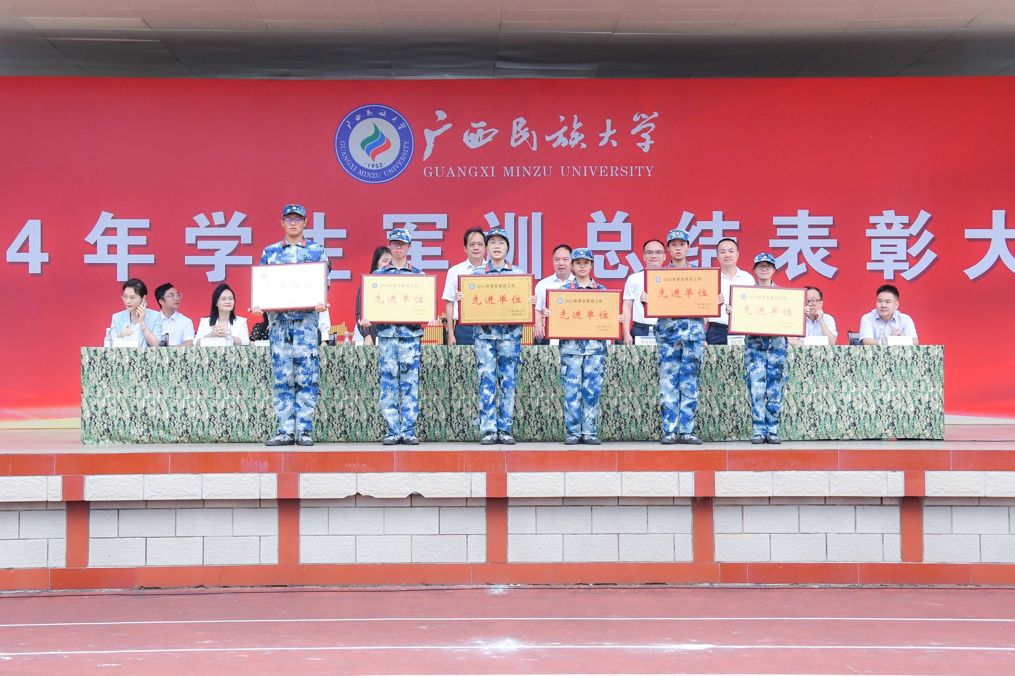 本次大会共表彰先进连队15个,先进排42个,军训优秀教官126名,军训文明宿舍394个,军训先进个人2432名。