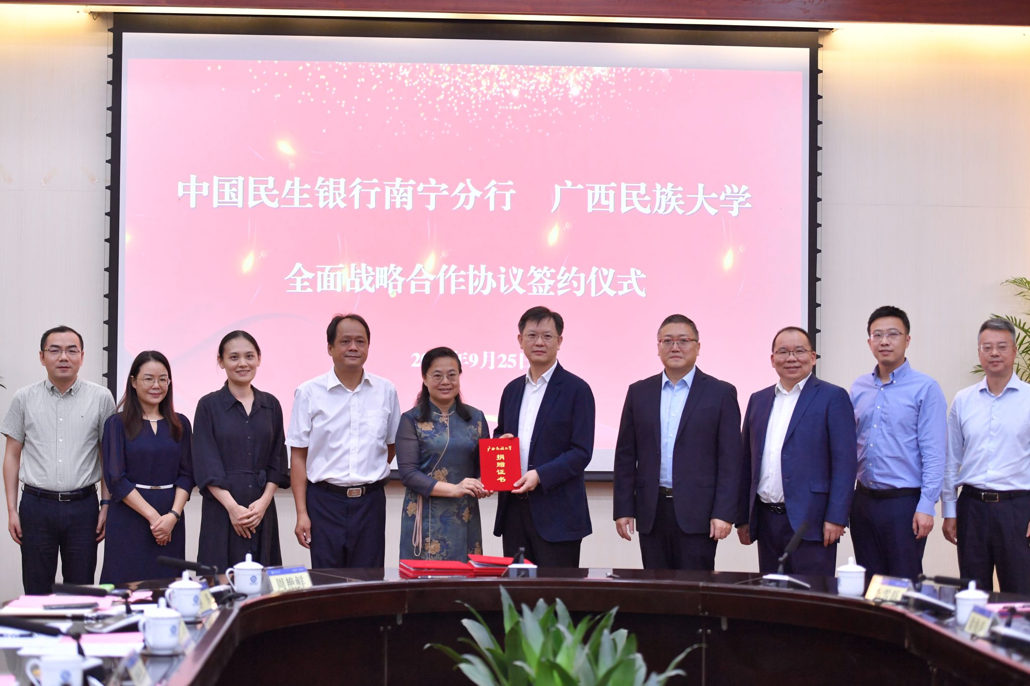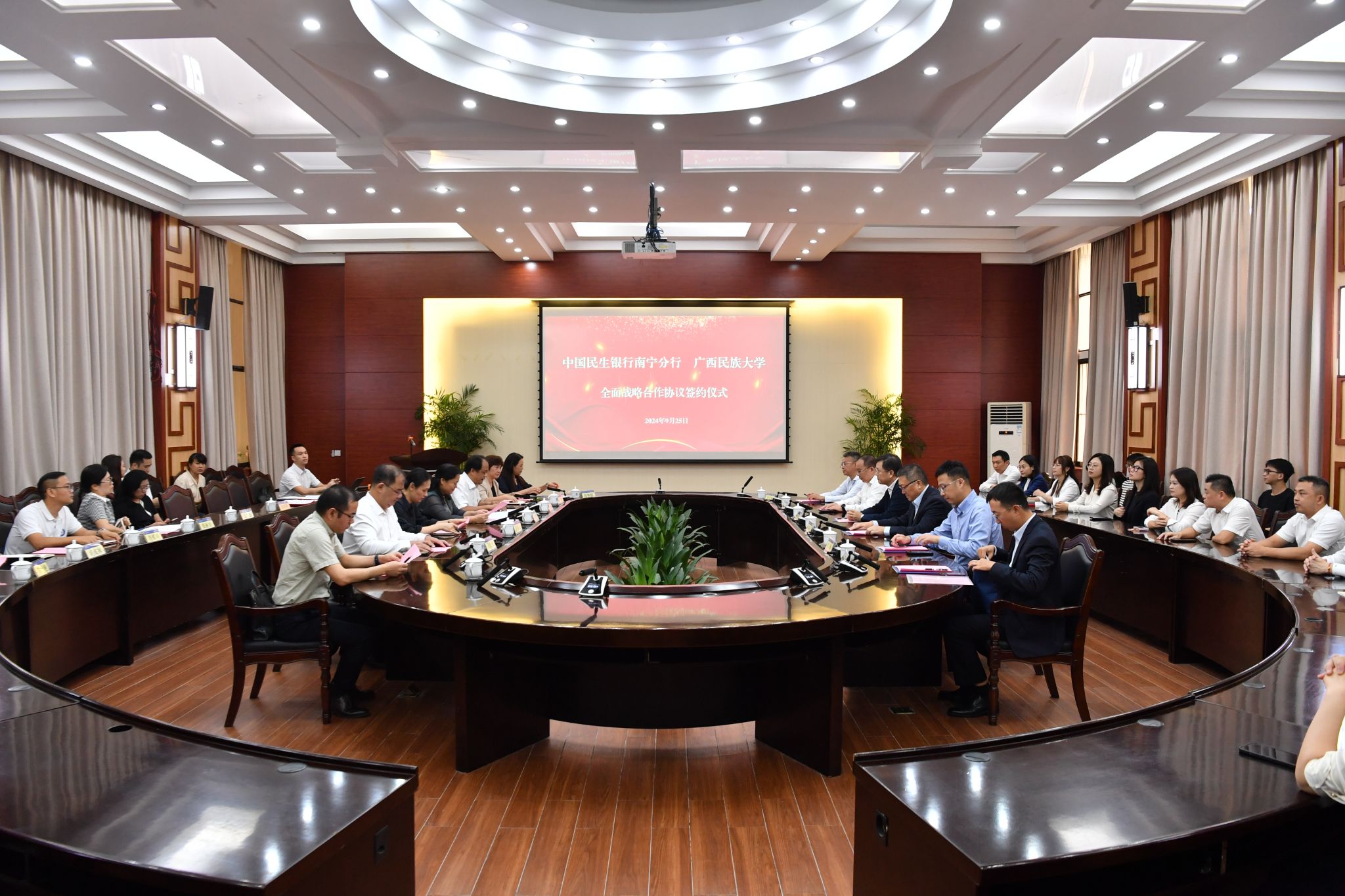 【大学生通讯社报道】9月25日上午,beat365亚洲体育官方网站与中国民生银行南宁分行举行全面战略合作协议签约仪式。学校党委副书记、校长韦仕珍,中国民生银行总行党委委员、副行长黄红日出席签约仪式。学校党委常委、副校长蔡高根主持仪式。