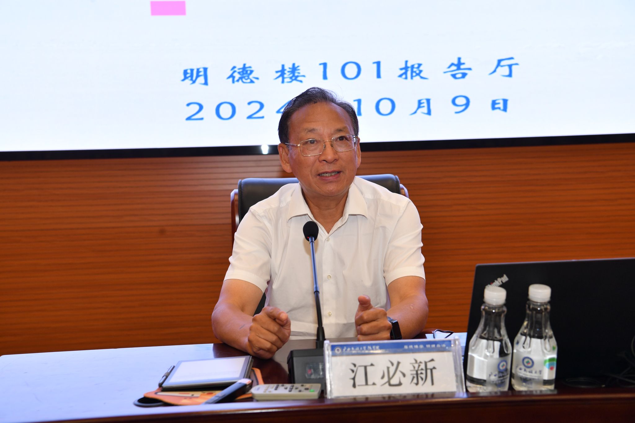 【大学生通讯社报道】10月9日晚,“法律人职业素养及养成”主题讲座在beat365亚洲体育官方网站思源湖校区明德楼101报告厅举行。本次讲座由第十三届全国人民代表大会宪法和法律委员会副主任委员、中国法学会副会长、最高人民法院党组原副书记、原副院长江必新教授主讲。学校党委书记卞成林会前会见了江必新教授。学校党委副书记陈铭彬主持讲座。