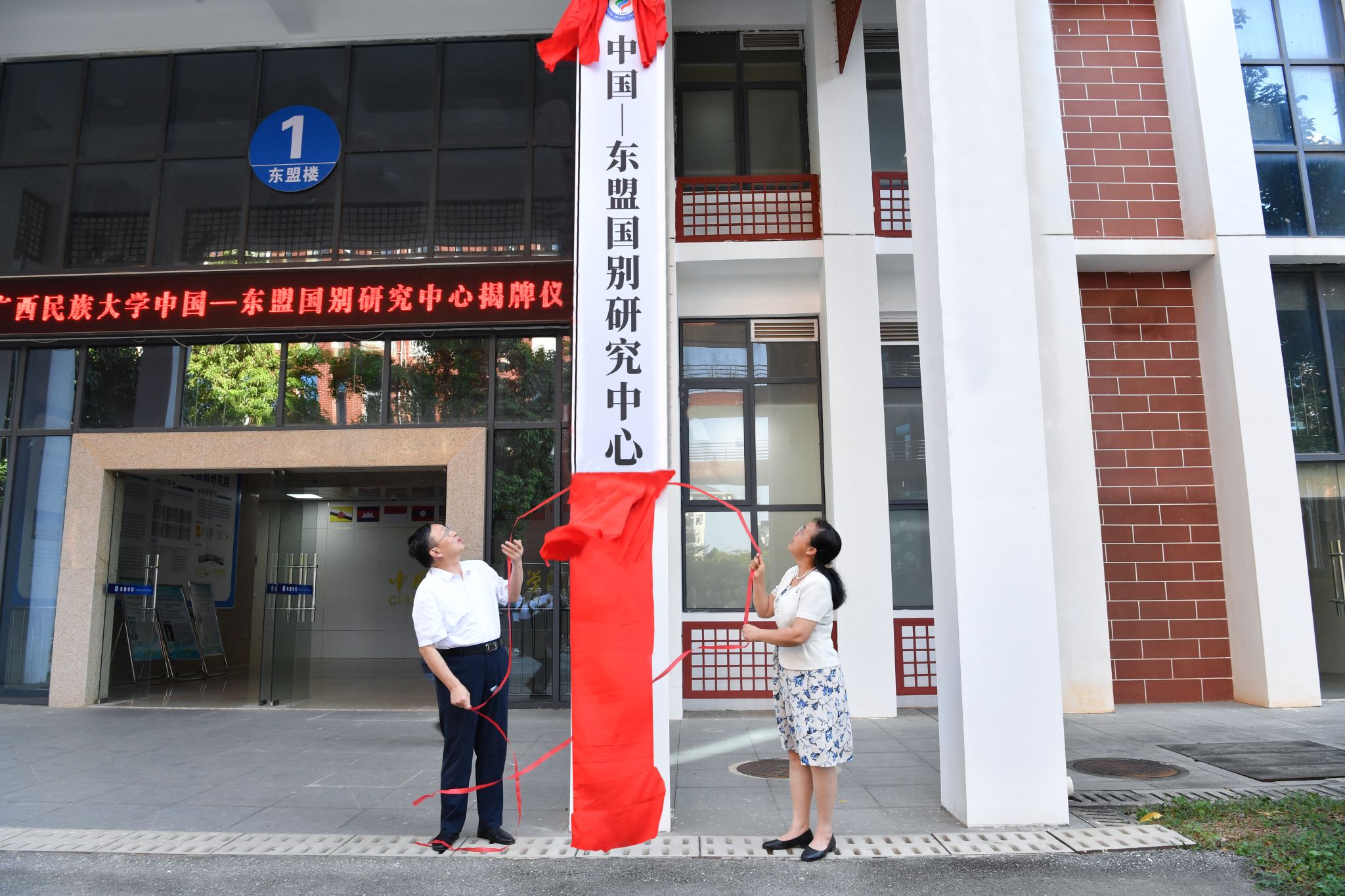 卞成林、韦仕珍共同为中国-东盟国别研究中心揭牌