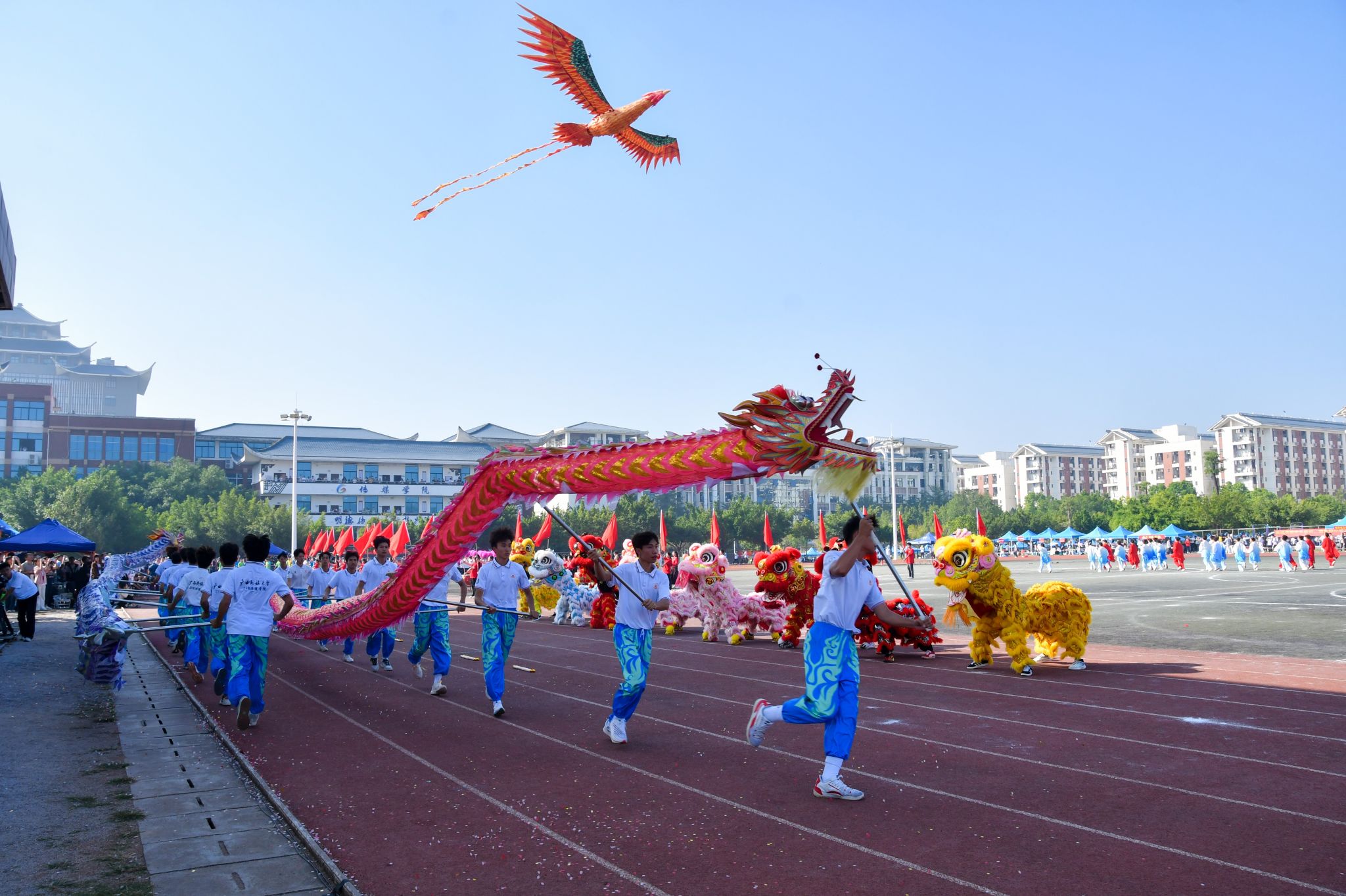 节目表演环节精彩纷呈。来自全校各学院、部门的师生带来工间操、民族健身操、太极拳和舞龙舞狮等表演,巧妙融入了奥运五环、校徽、校训等鲜明元素,凤凰飞舞,祥龙跃动,共同展现出一幅锐意进取、奋发向上的动人画卷。