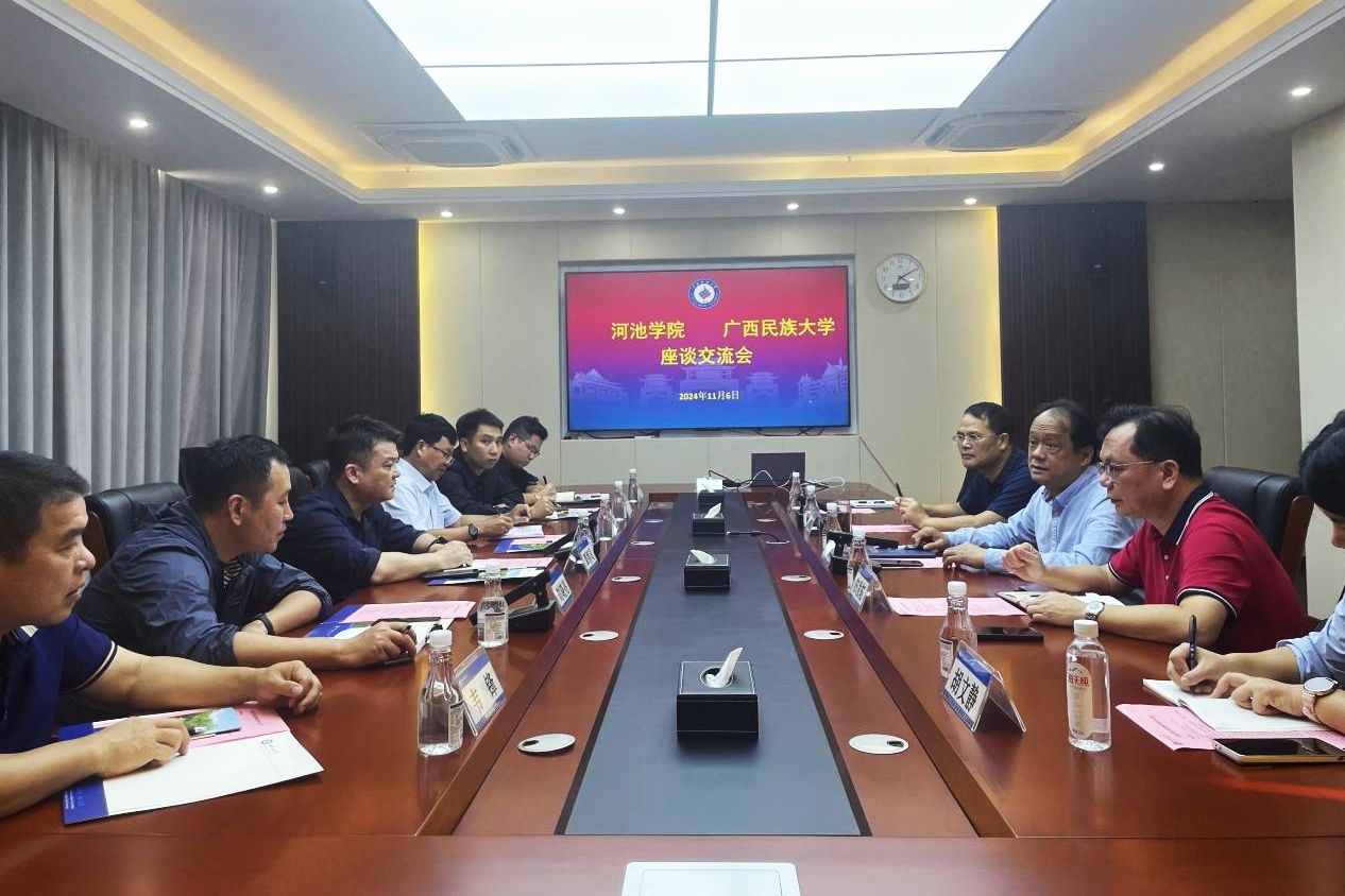 11月6日,蔡高根会见河池学院党委常委、副校长覃拥灵一行,双方围绕新校区建设、后勤智能化和信息化管理、饮食服务中心管理和运营模式、标准化厨房建设等进行交流,希望两校在校区建设、后勤管理和保障等方面加强交流合作,规范后勤管理,提升服务水平,共建和谐校园。(初审/归发轫 复审/潘之铭 终审/王文娟)