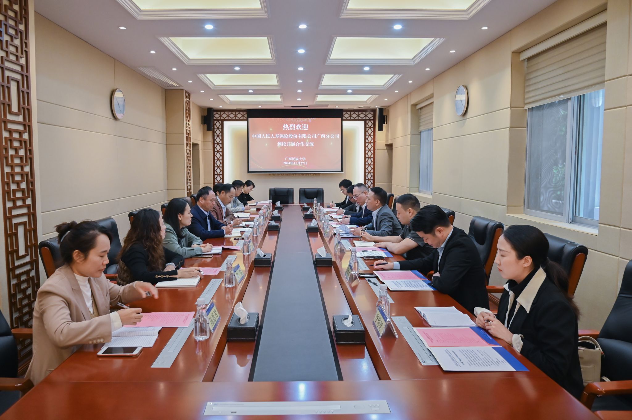 11月27日,学校党委常委、副校长何立荣会见中国人民人寿保险股份有限公司广西分公司党委委员、副总经理丁浩鹏一行。双方就合作领域、合作方式、对接机制等工作事项进行深入交流,希望通过合作实现共赢。(初审/李媚 复审/潘之铭 终审/王文娟)