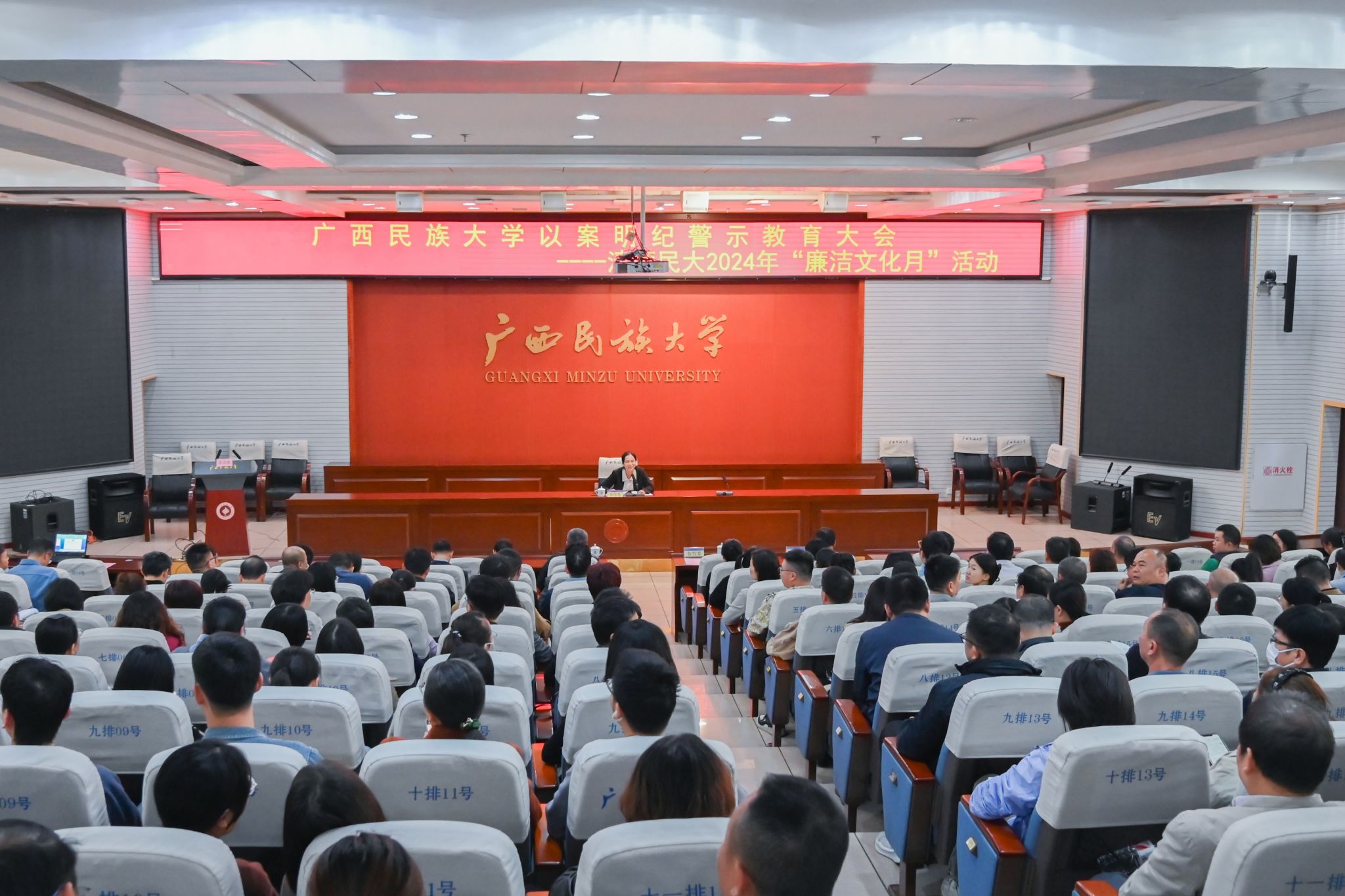 11月29日,韦雪芳在以案明纪警示教育大会上强调,全校广大党员干部、教职工要以案为鉴、警钟长鸣,各级党组织要切实履行主体责任,学校纪检监察机构和院级纪委要认真落实监督责任,职能部门要全面履行监管责任,加强纪律建设,持续加大对典型问题的核查通报和整治力度,纵深推进全面从严治党。(初审/李济权 复审/潘之铭 终审/王文娟)