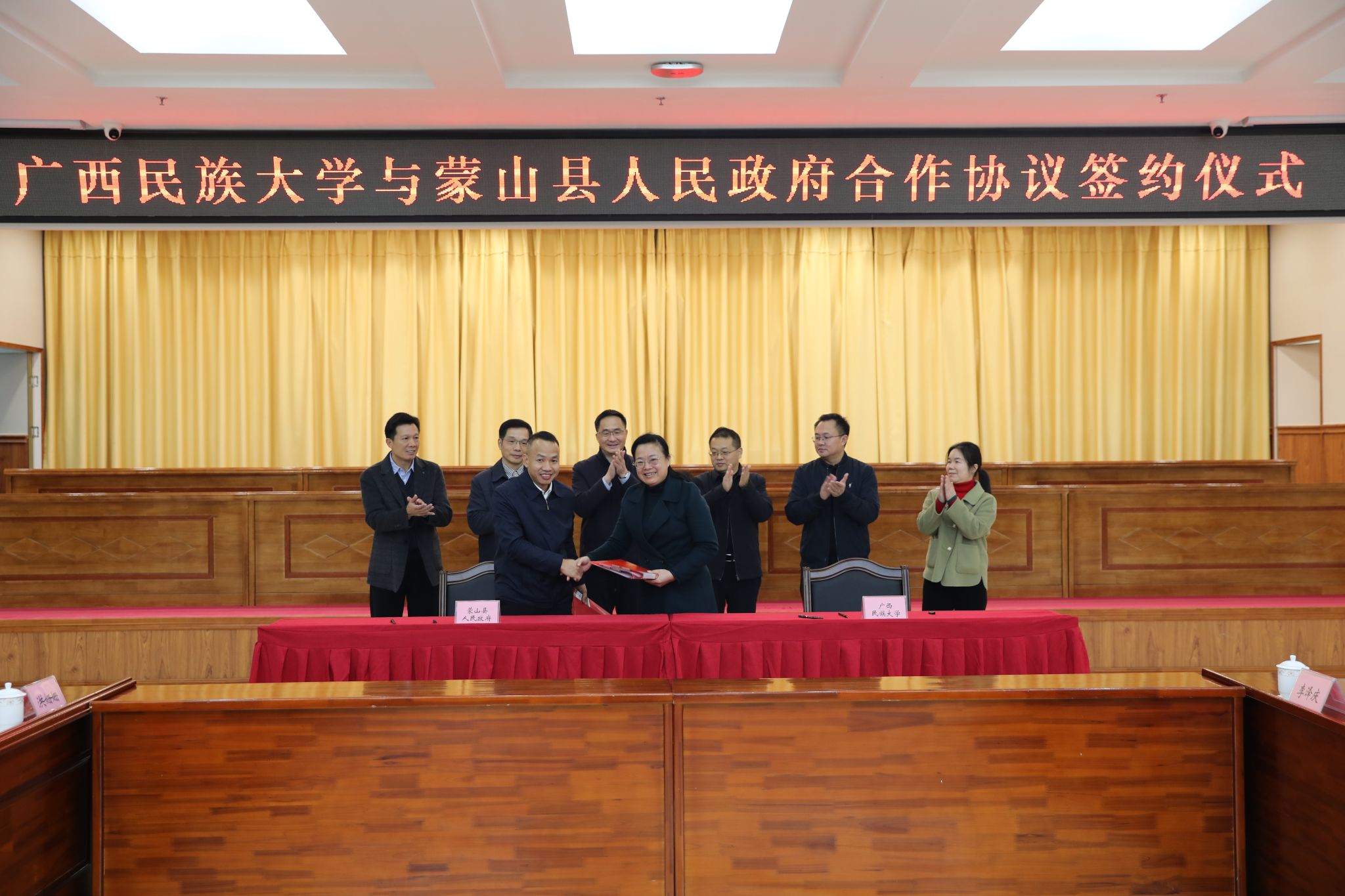 13日,beat365亚洲体育官方网站与梧州市蒙山县人民政府合作协议签约仪式在蒙山县人民政府办公楼举行。韦仕珍、蒙山县委书记张银岳、县人大常委会主任何健出席仪式。蒙山县委常委、统战部部长、副县长韩格主持签约仪式。