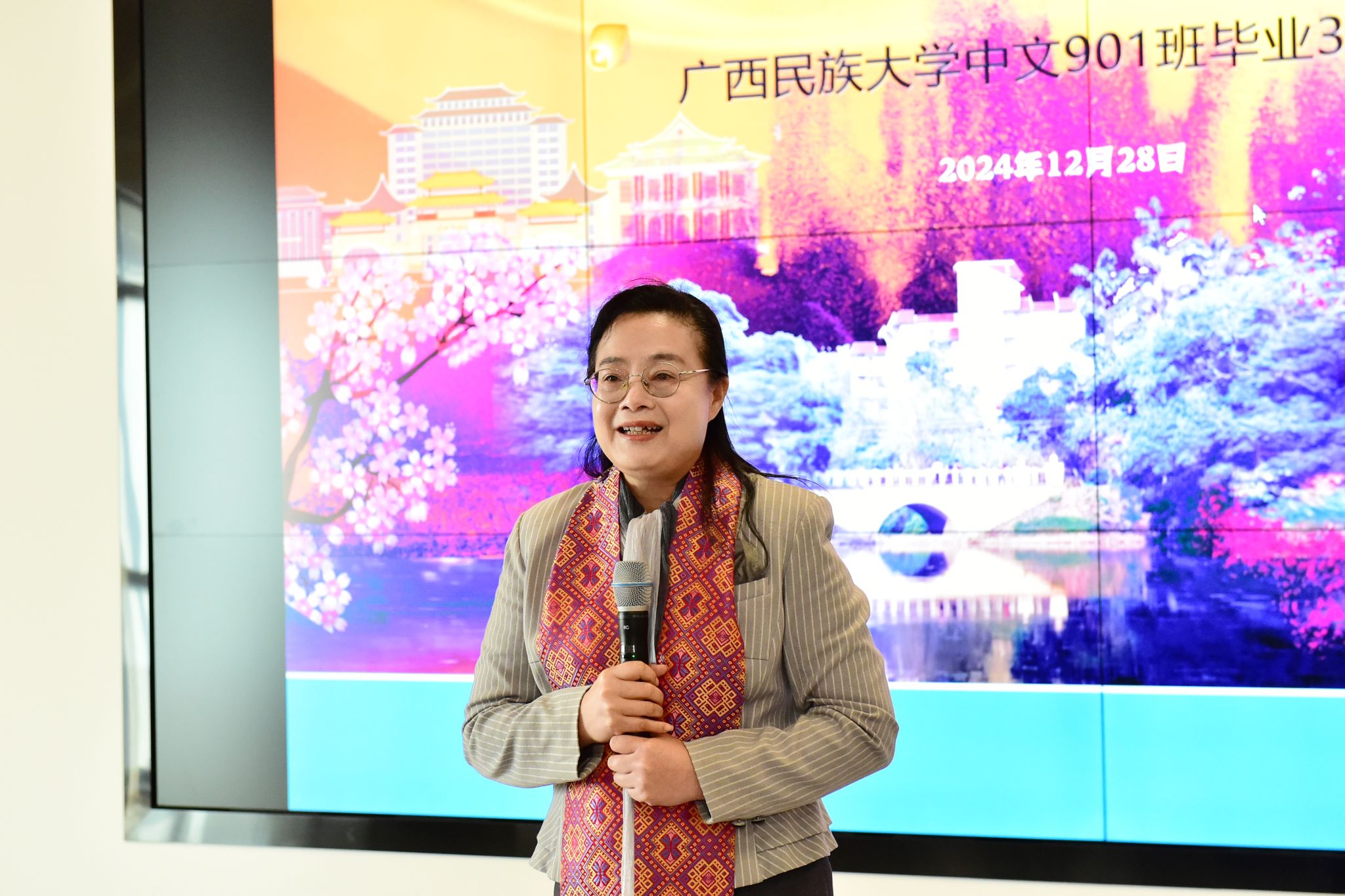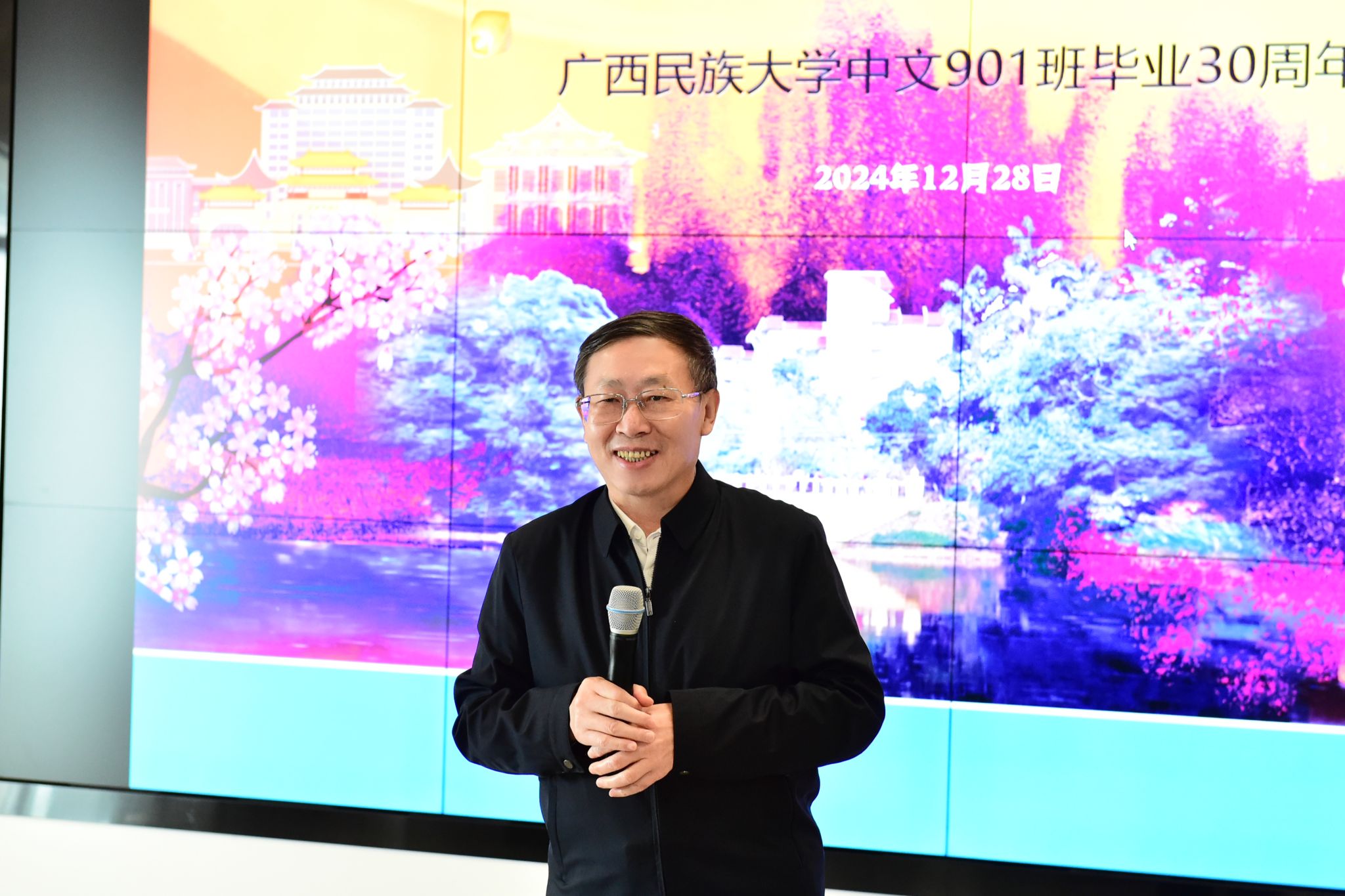 韦仕珍对校友们表示诚挚问候,简要介绍了学校发展情况。韦仕珍表示,当前学校办学条件不断优化,为广大师生提供了更为广阔的学习与生活空间。下一步,学校将坚定不移地以铸牢中华民族共同体意识为主线,不断提升学校的学术水平与科研实力,全力建设好博士点,进一步深化国际化办学特色,建设特色鲜明的高水平现代化综合大学,培养更多优秀人才,为教育强国建设贡献力量。