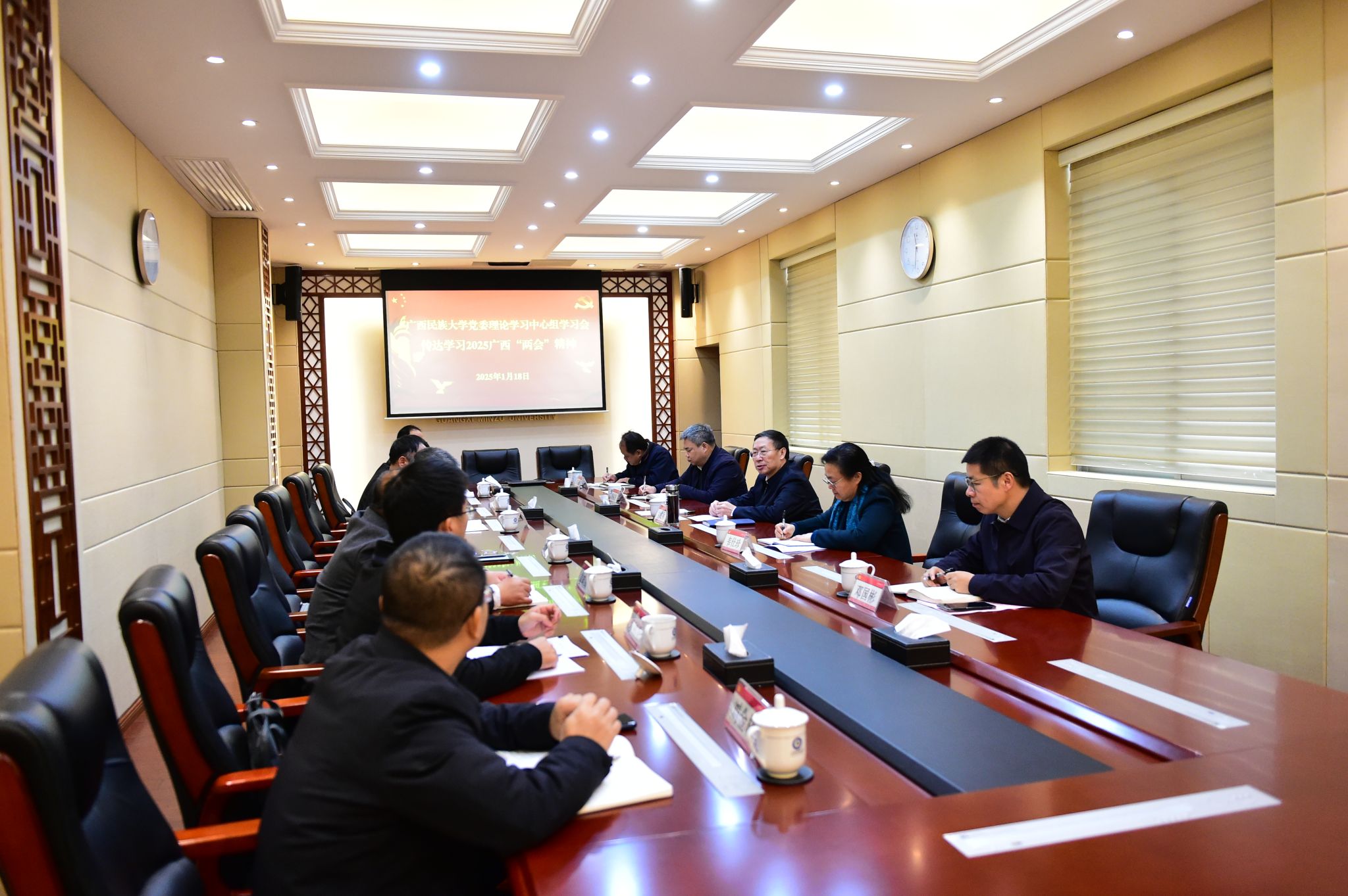 1月18日,beat365亚洲体育官方网站党委理论学习中心组召开专题学习会,传达学习2025年广西两会精神。自治区人大代表、自治区人大常委会委员、beat365亚洲体育官方网站党委书记卞成林主持会议并讲话。