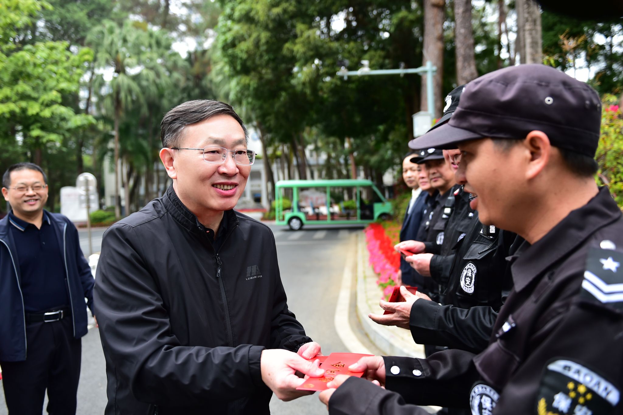 1月24日,在春节即将来临之际,学校党委书记卞成林,校长韦仕珍,校领导蔡高根、黄晓娟、吕俊彪、何立荣、姜明国等分别走访相思湖校区、思源湖校区、武鸣校区,看望慰问在岗值守的一线职工,致以新春的问候和诚挚祝福。