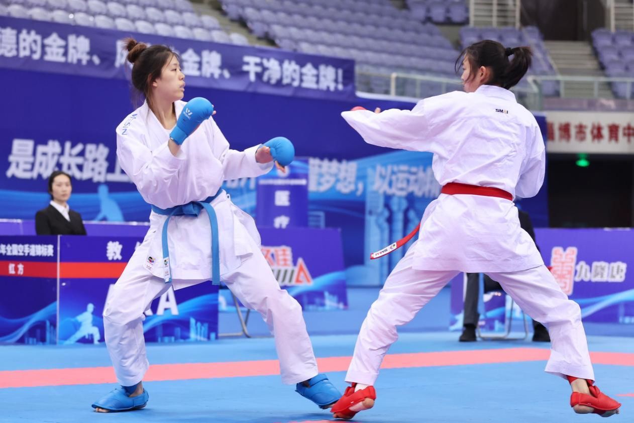 最终按照三局两胜的赛制,广西队以总比分2:0战胜对手,第一次在全国空手道锦标赛中获得女子团体组手冠军。