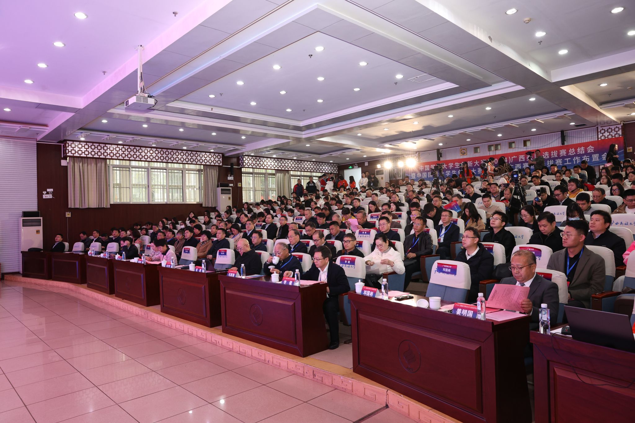 本次会议以线上线下相结合的形式召开,主办单位、协办单位有关负责人及80所区内高校分管创新创业工作校领导、有关部门负责人,师生代表共300多人在主会场参加会议。各高校、区直各中职学校、各市教育局在线上参加会议。(初审:刘银妹 复审:荣子卿 终审:孙寿媚)