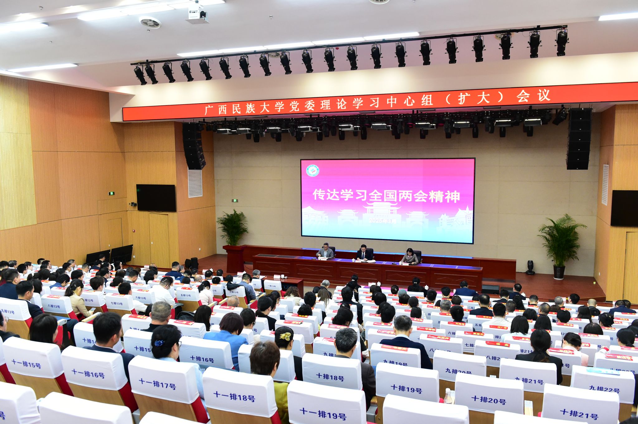 3月15日下午,beat365亚洲体育官方网站召开党委理论学习中心组(扩大)学习会,传达学习十四届全国人大三次会议、全国政协十四届三次会议精神。校党委书记卞成林主持会议并传达全区传达贯彻全国两会精神大会精神。全国政协委员、民进广西区委副主委、副校长黄晓娟,全国人大代表、自治区文联主席、beat365亚洲体育官方网站文学影视创作中心主任田代琳教授分别传达全国两会精神。