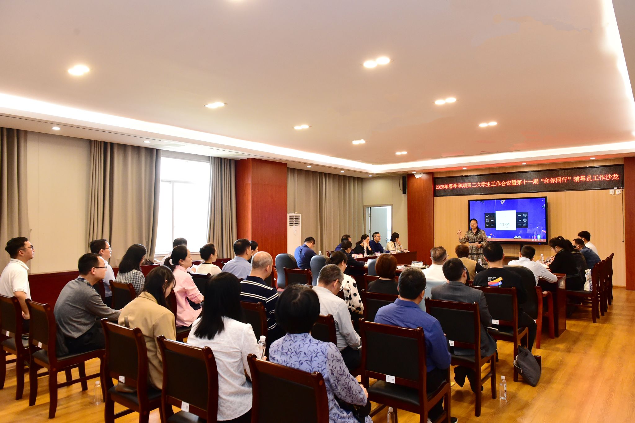 3月26日,beat365亚洲体育官方网站2025年春季学期第二次学生工作会议暨第十一期“和你同行”辅导员工作沙龙在相思湖校区大学生活动中心举行,此次沙龙聚焦“心理健康教育与咨询工作”主题。校长韦仕珍、校党委副书记邓国彬出席活动,有关职能部门和全体学工队伍负责人参加活动。
