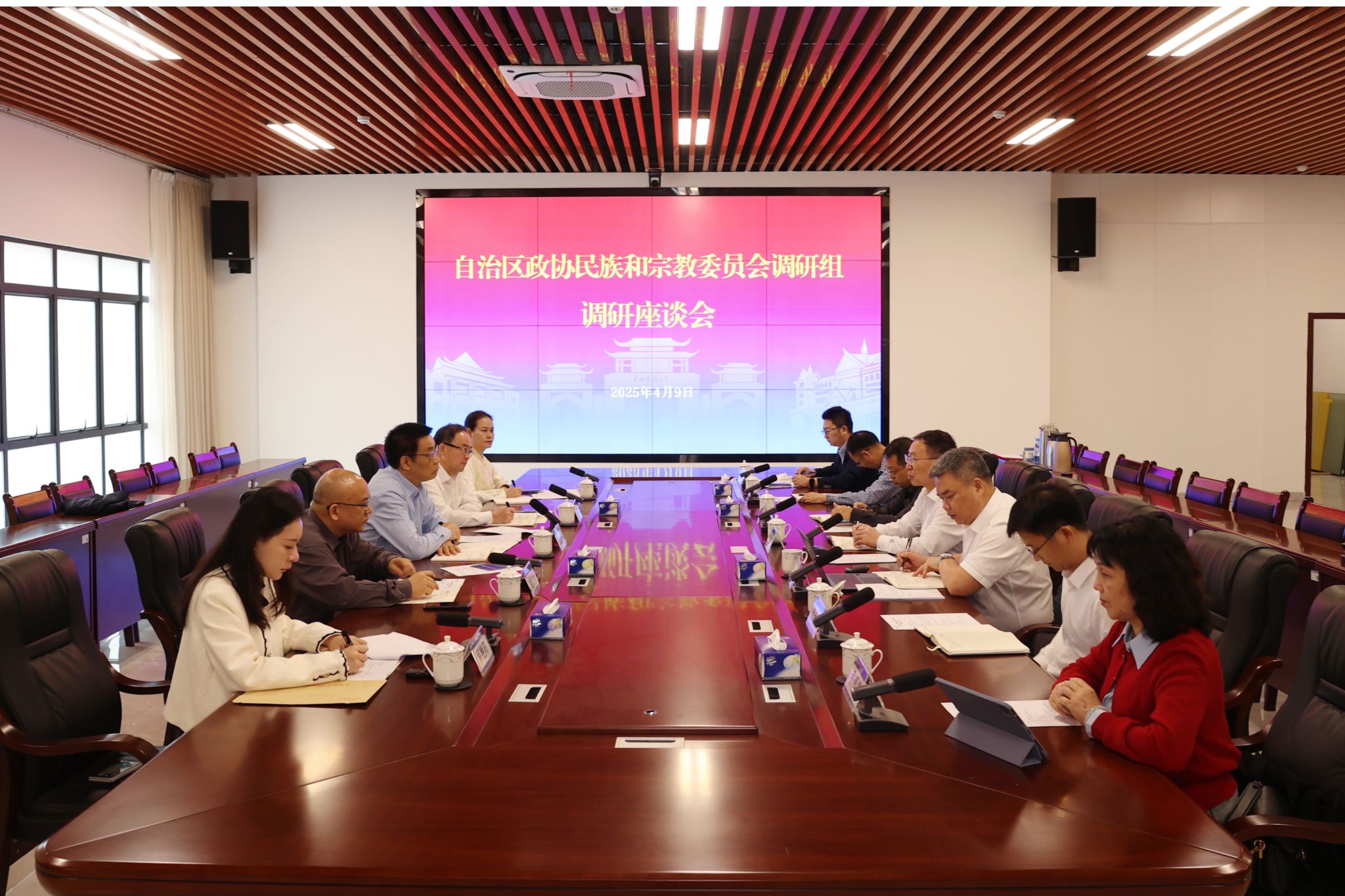 【大学生通讯社报道】4月9日上午,自治区政协民族和宗教委员会主任班忠柏率调研组到beat365亚洲体育官方网站广西中华民族共同体意识研究院调研交流,beat365亚洲体育官方网站党委书记卞成林,党委副书记陈铭彬出席座谈会。